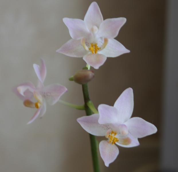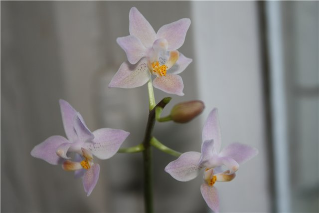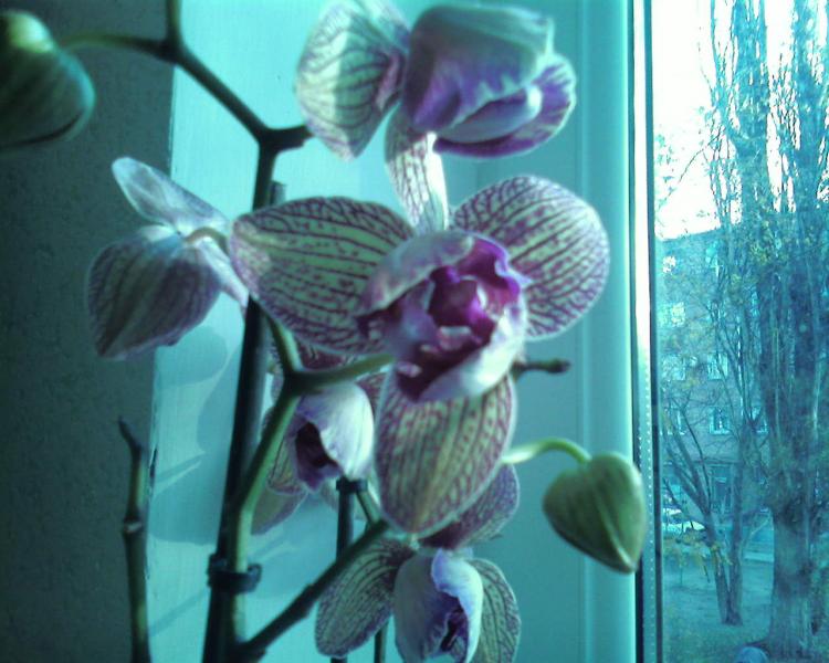 Вот такой у меня новый любимчик: Phal. equestris 'orange':girl_rapture:. Цвет просто сказка. Сначала был белый, потом оранжевый, сейчас какой-то фиолетово-синий. Цветочков мало-маленькие мы еще