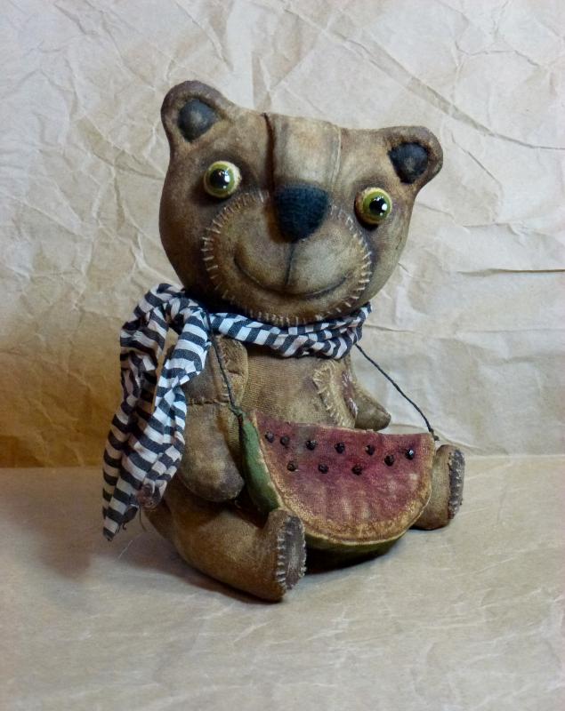 У него шапочка из всамделешных старых ниток..В общем, я старалась и люблю мишек из прошлого времени со своим характером и историей))