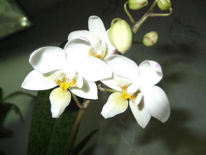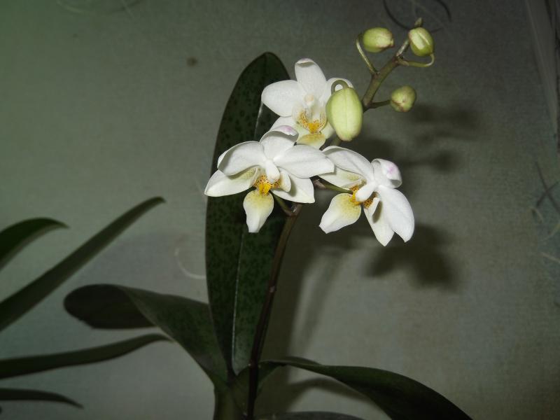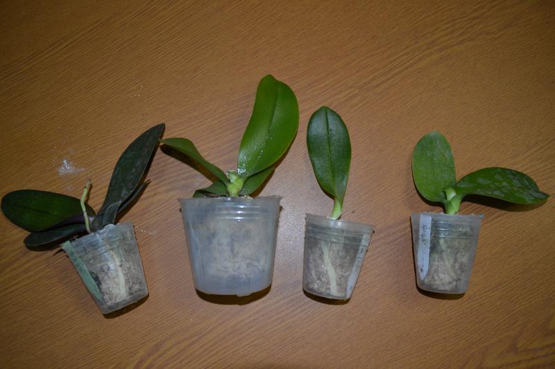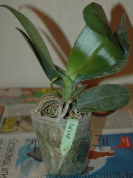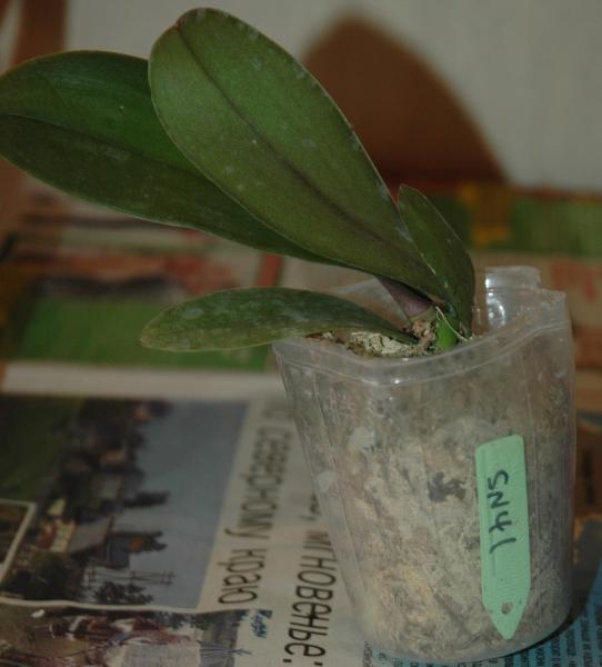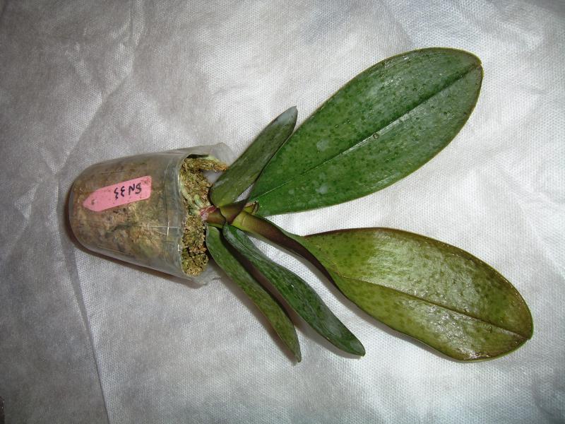 1.Фаленопсис Horng Pii Rainbow 1,7 потерял 1 лист,1 лист остался,небольшое черное пятно на шейке,присыпала измельченным метронидазолом. На последнем листе ближе к шейке странные сухие пятна,на обратной стороне вмятины (похожи на вирусные,как в энциклопедии). Это самый слабый из заказа. Буду бороться за него.