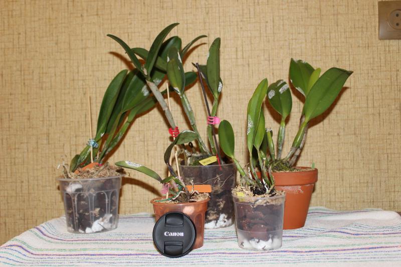 Фото на скорую руку… Верхний ряд слева направо: Pot Chief Emperor "Sunset", C. Green Emerald 'Orchid Queen', Bc. CF Bride White Christmax. Нижний ряд: Slc.Cherry Bee 'Yi Xin', Lc. Chian-Tzy Angiekoh 'Four Season'. Все с новыми ростами, а Bc. CF Bride White Christmax с чехлом, если повезет, не засушит))