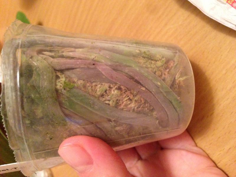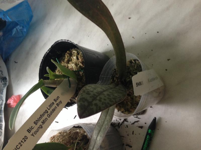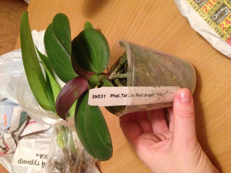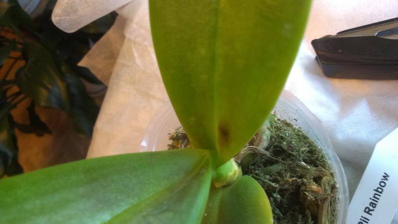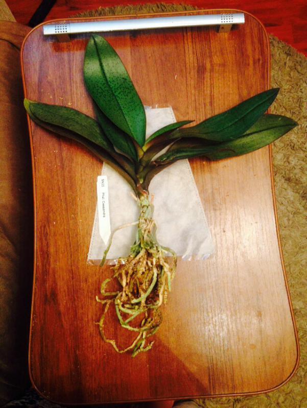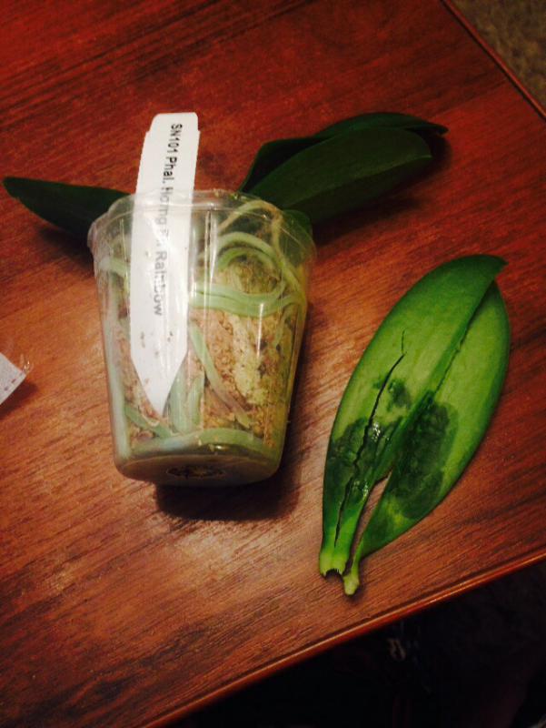 Из прошлого заказа страдалец не выжил. Рискнула его еще раз получить. Размер растения 2,5, а не заявленные 3,5. Пришел во влажном мхе. Сам фаленопсис хороший, но вот листья внушают опасения: один сразу удалила. Другие два буду наблюдать. Сейчас после отмокания остановлю на ночь высыхать, потом пятна замажу зеленкой. Резать не хочу, так как тогда останется только один, самый молодой листик. Или может кто еще чего подскажет?