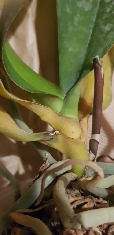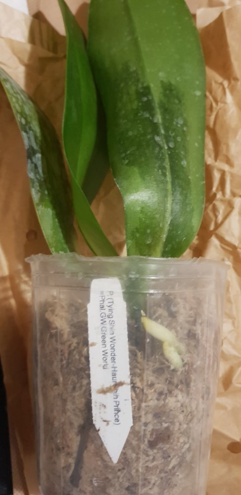 Орхидеи с номером от бридера на пакете 70 и 19 имеют повреждения: несколько жёлтыми листьями и отёками на них. За два дня номер 70 сбросил крайние листья. Остальные пока остались.