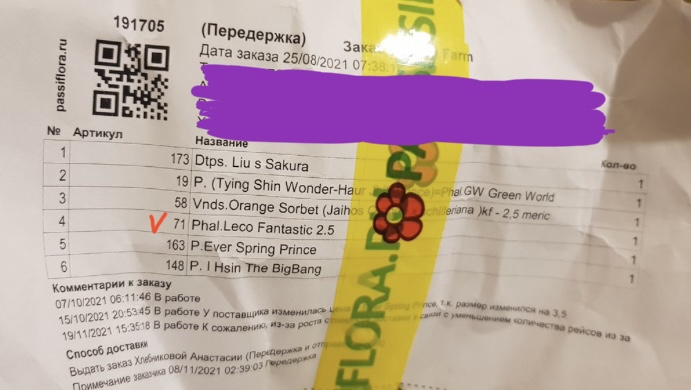 Заказ # 190 407 - 7 декабря поступил на передержку.