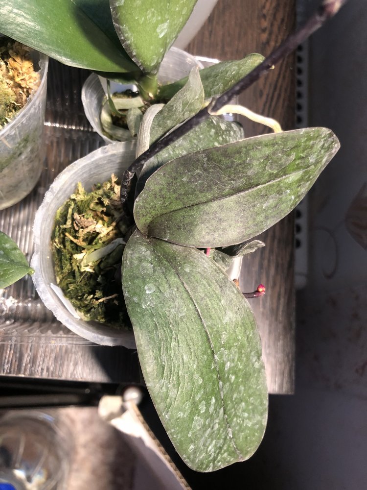 Листья у нескольких растений пострадали, bellina сильнее всего, пожелтевшие вплоть до центрального, чернота в пазухе сопревшего листа, не уверена, что выкарабкается, хотя изначально крепкое и сильное растение (горшок 3,5, мощная корневая, два проклюнувшихся цветоноса).