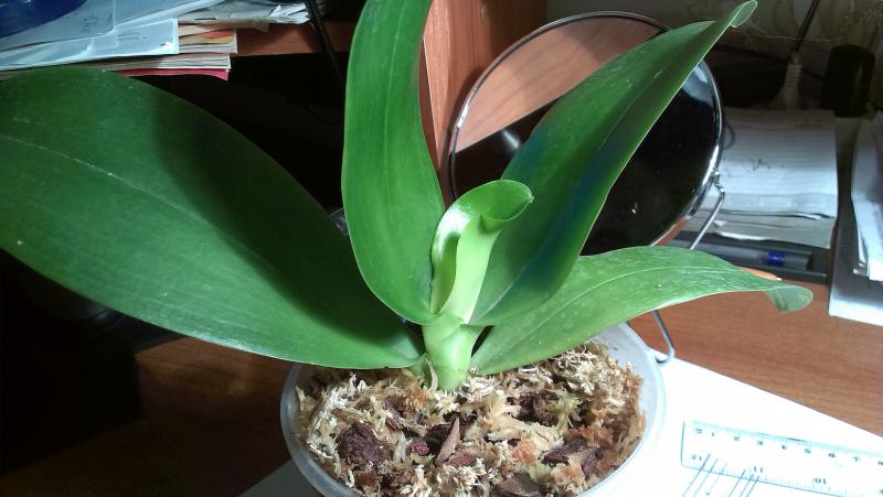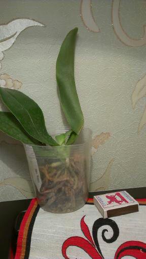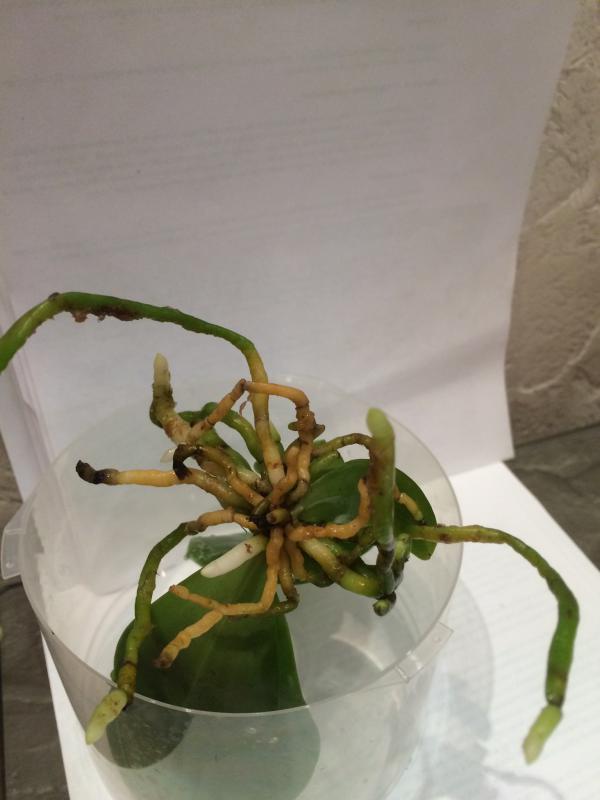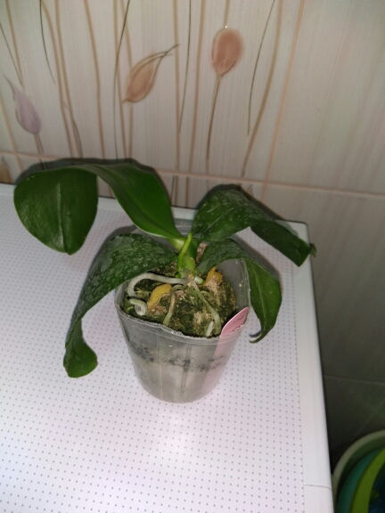 В размере 2,5, с цветоносиком. Тургор слабый, корней много, нормальные. Оставила пока в этом горшке, посмотрю, что с цветоносом будет делать.