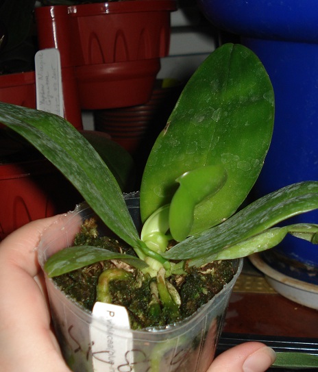 P. David Lim, 3.5. Обещался взрослый – пришел взрослый. Имеет три цветоноса, вагон корней, все листья нещадно поедены клещами и в пятнах от грибка. В целом, растение очень хорошее.