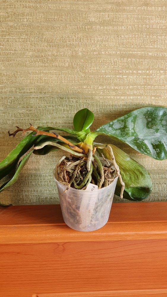 RW-698 Phal.Yaphon Dragon Maiden x AL Red Sun Queen - 1,7 так же замечательное качество растения, мох просушен, 5 листьев, самый большой лист - 13см, тургор немного снижен, есть цветонос, на котором сохранился цветок, видны растущие корни.
