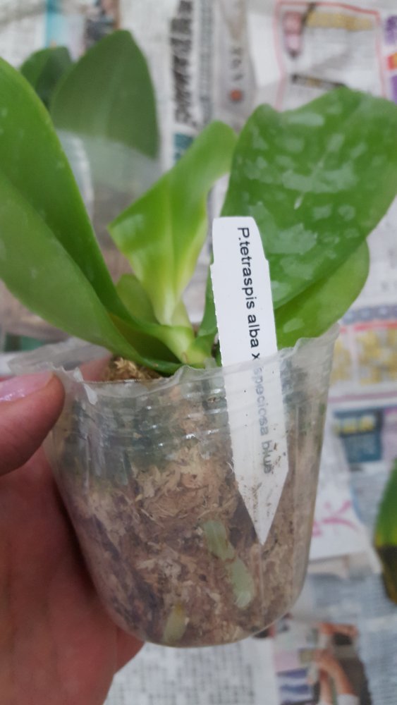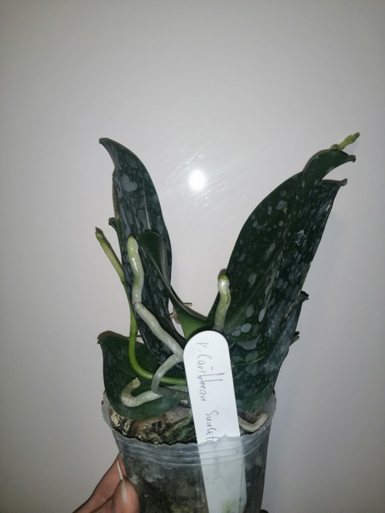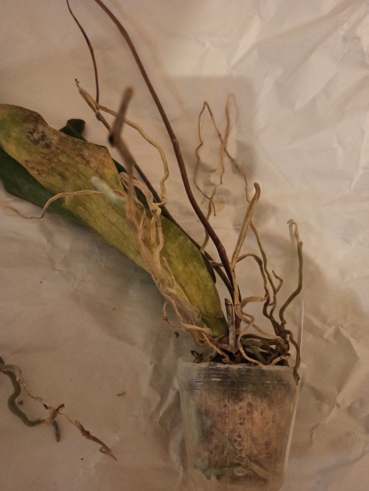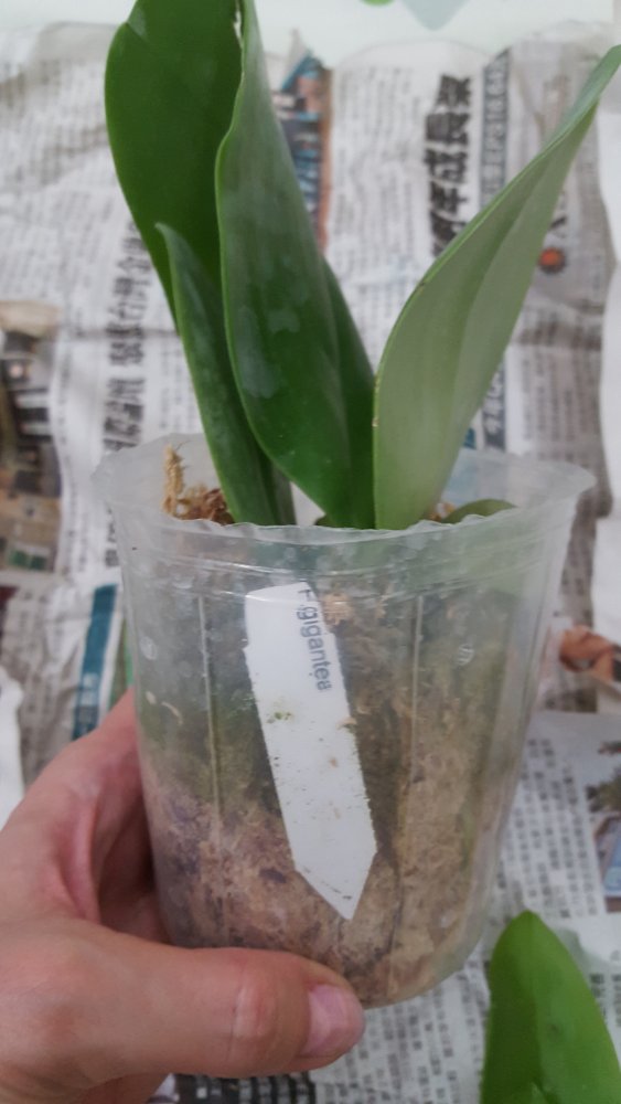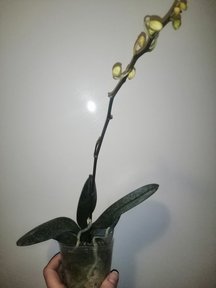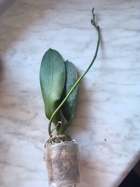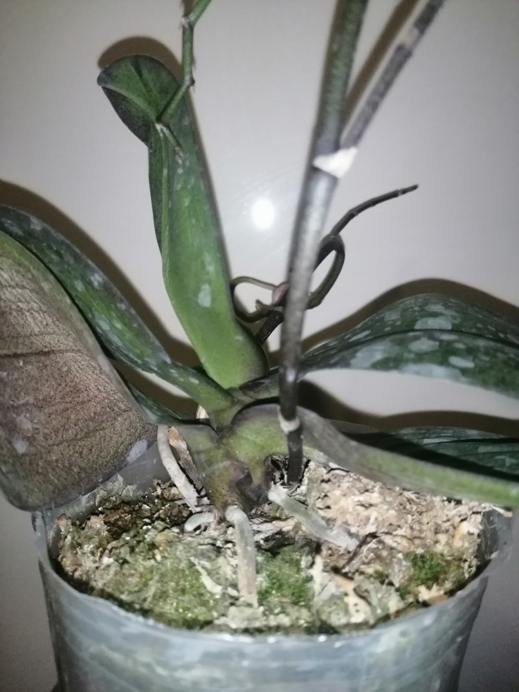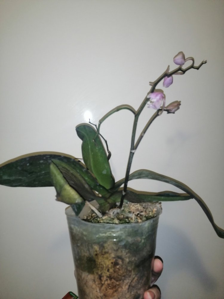 Размер 3,5! Огромная! 3 широкие листа: 20, 20 и 30 см! Тургор незначительно снижен. Мох сухой. Корни чуть высохли, но отопьются. Замят и сломан край у большого листа при упаковке. В остальном прекрасная орхидея за такую небольшую цену. Спасибо Пассифлора.