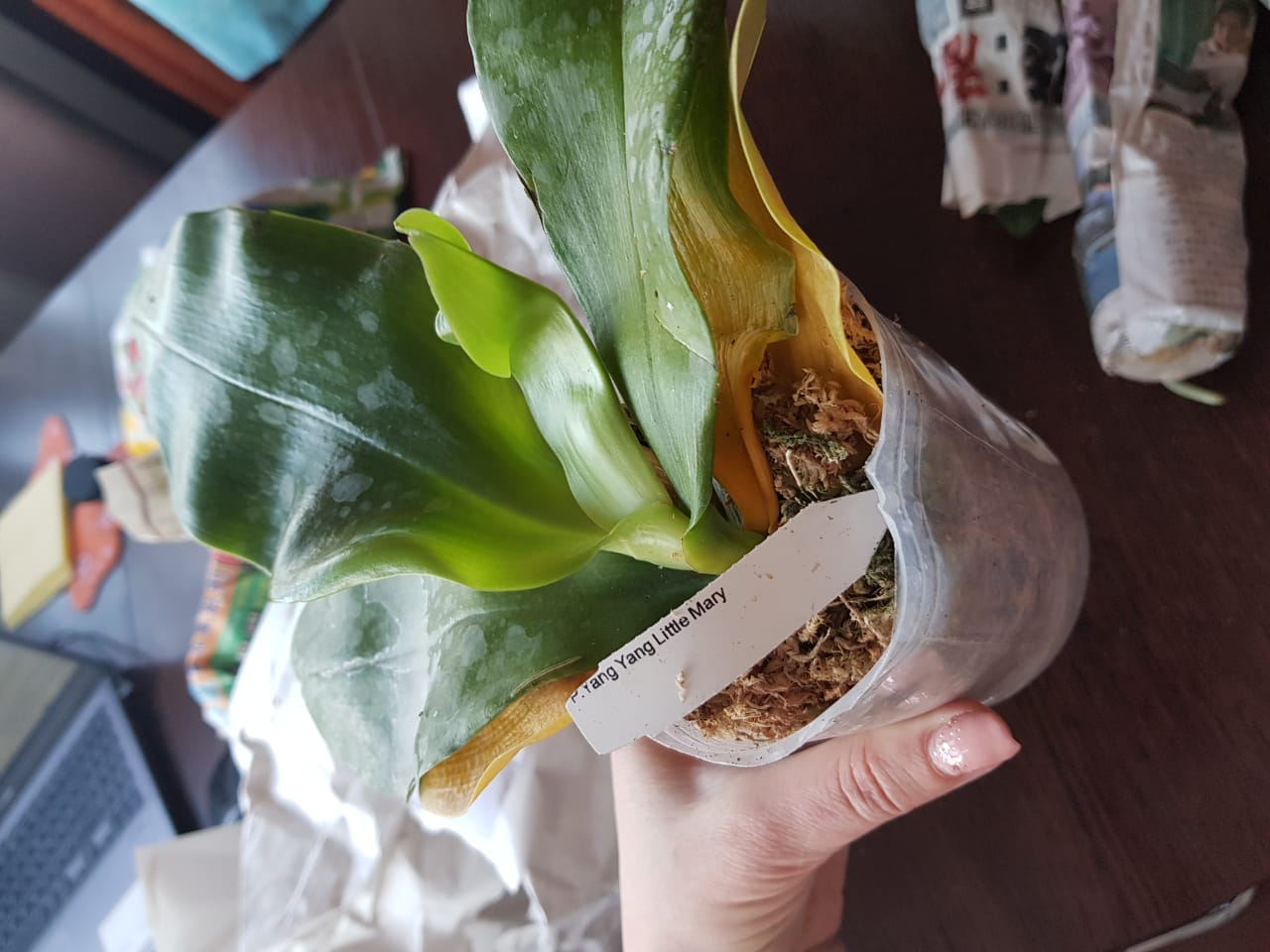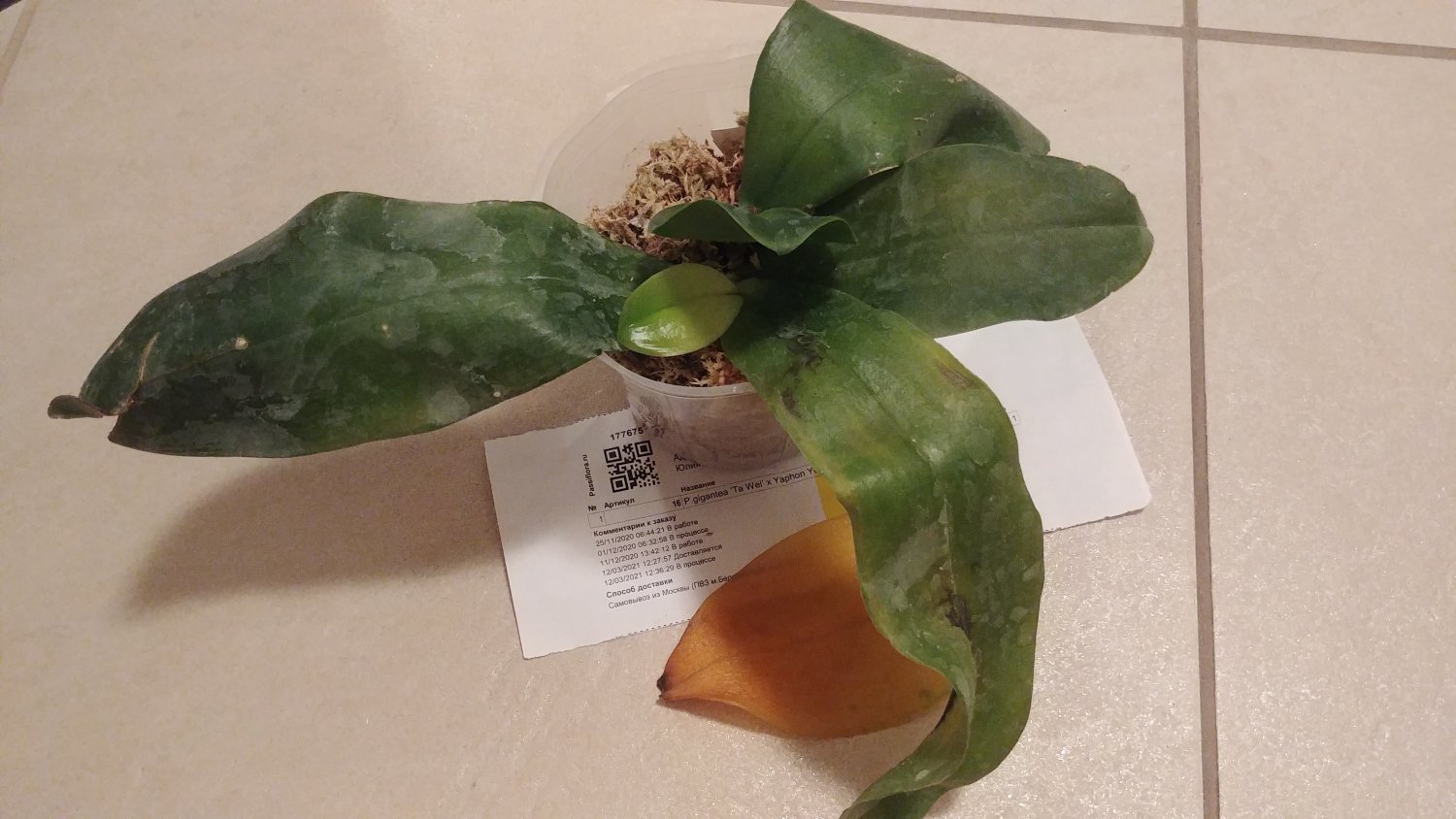 В заказе 1 растение P.gigantea alba x amboinensis flava Орхидея получена на 2-й день после получения СМС из ПВЗ. В дороге 1 час в термосумке