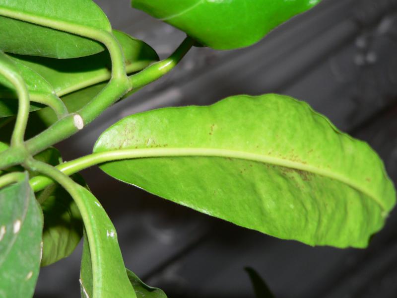 Вот на последних 2-х фото эти точки пока серого цвета ,позднее чернеют ,лист желтеет и отваливается . :(