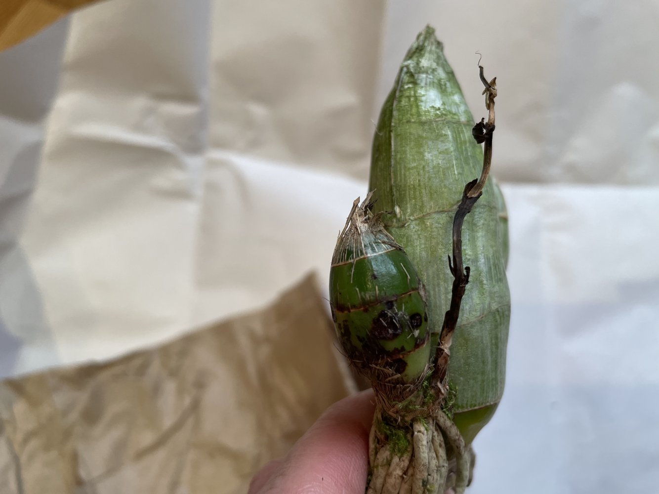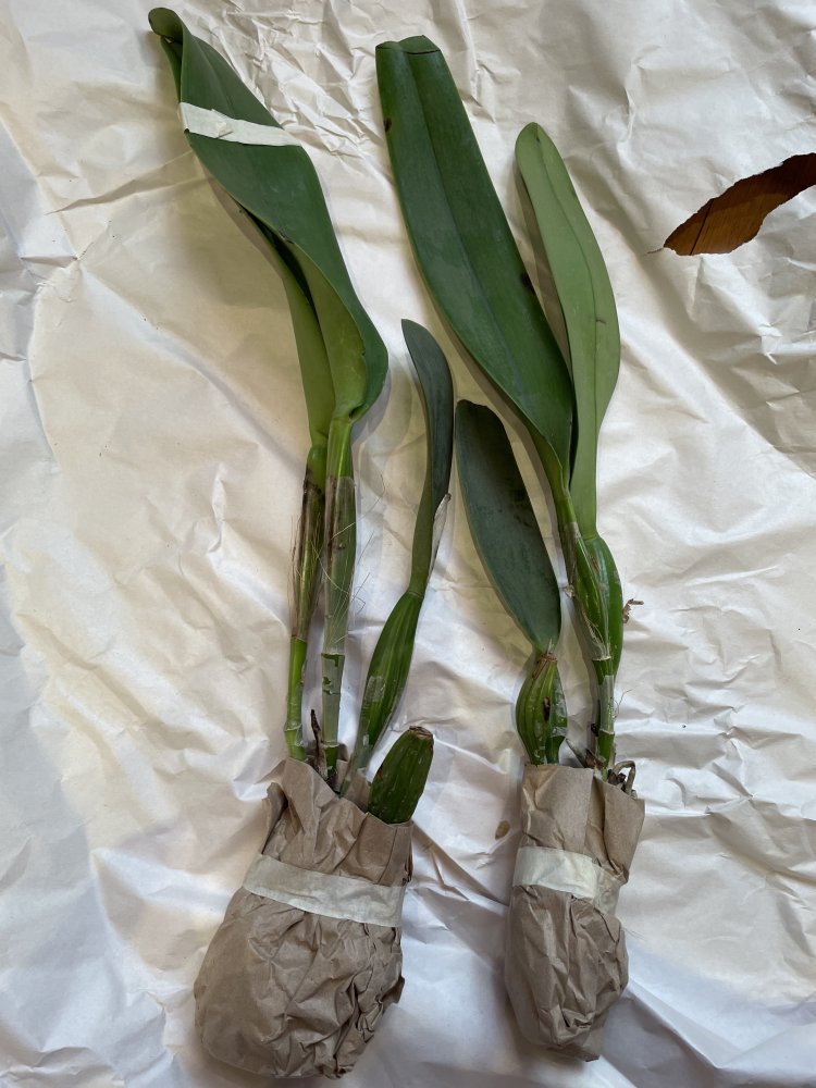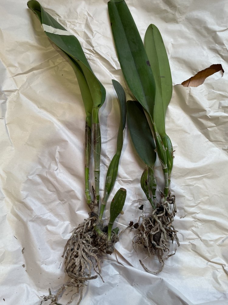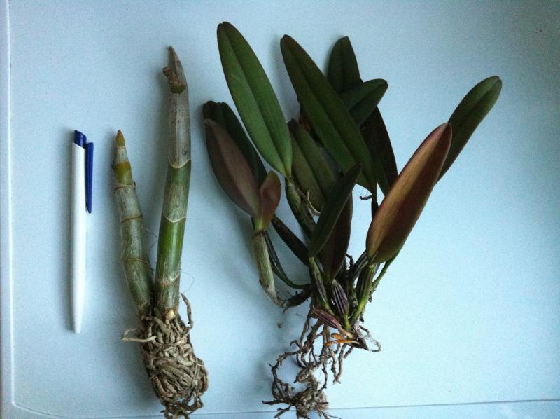 Cattleya luteola (8 to 12 pseudobulbs): взрослое растение - 13 п/бульб. Неоднократно цвело. На двух крайних п/бульбах чехлы (один засохший, второй живой). В целом, растение выглядит здоровым. Очень довольна качеством!