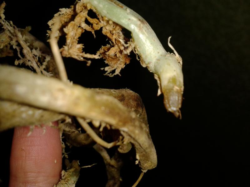 Такое пятно резать/вырезать обязательно, ИМХО. А срезы уже обработать чем обычно - от зеленки до фундазола, это лучше опять к ИринеФотографии сделала с телефона утром. Тогда же высунула орхидею из горшка и положила просушиться.Что интересно, посмотрела я сейчас на эти "обмороженные" корни, а они ссохлись и сжались. Пятно замазать зеленкой или чем-то похимикатней?