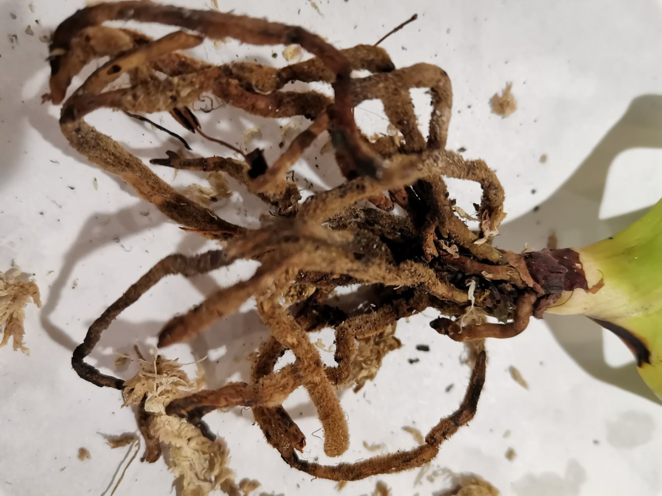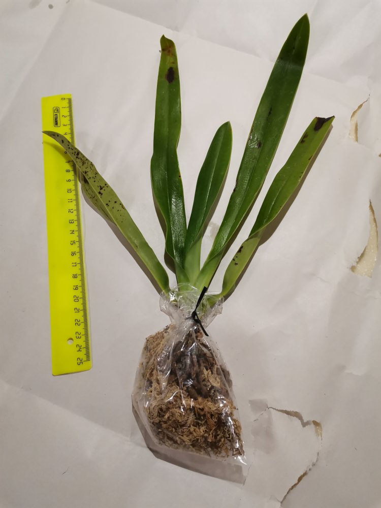 Мое добро пришло, 3938 Paph. Kemp Tower In-Charm AM/AOS x Paph. sanderianum Ishibashi :). Не знаю, во что сажать, корней и правда живых почти нет.