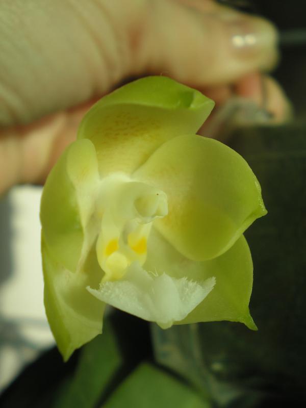 распускается P. Yungho Gelb Canary 'SW' x P. Su-An Cricket 'SW' , еще не совсем открылся,но аромат уже есть, пахнет цитрусовым, очень вкусненько