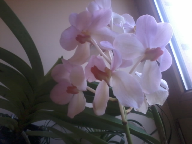 Цветет Dtps. Sogo Gotris 2,5 pot Shining пришел 04.04.13 с цветоносом и 4 бутонами, они конечно в дороге повредились, я их оборвала, а эти 5 выросли уже у меня. Зацвел 13.05.13, пахнет пряной травкой то ли руколой, то ли горчицей