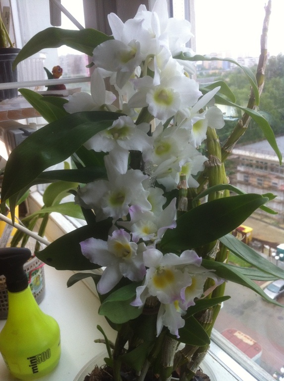 Ну и любимец всех гостей Дендробиум Нобиль (гибрид), в этом году он видимо наконец-то освоился, обжился и зацвел как следует