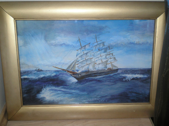 его акварель "Парусник" папе на день рождение