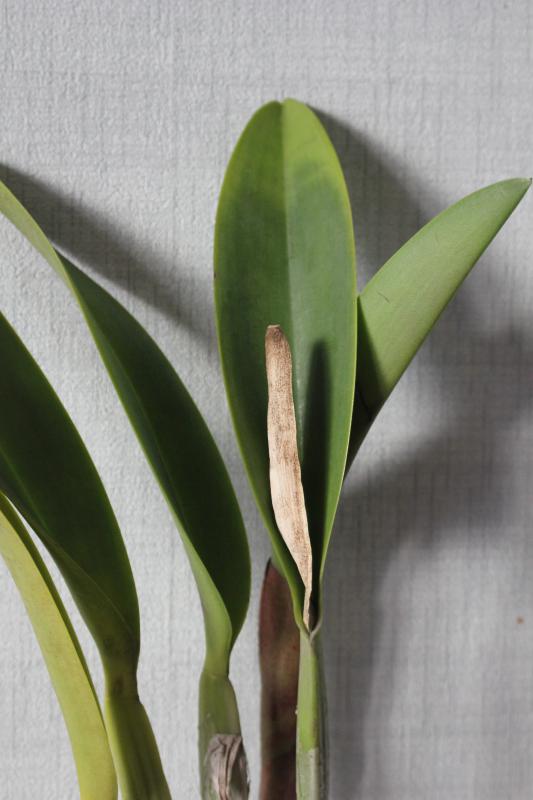 Ирина Баринова, Вы можете подсказать, это дефицит железа или как-то другая проблема у каттлеи? И надо ли удалять поврежденный лист старой бульбы?