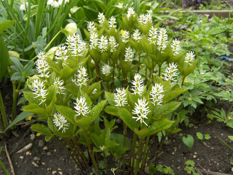 Многолетнее почвопокровное растение 10-15 см, родом из западной части Китая. Имеет короткие кисти с мелкими белыми цветами и очень декоративные, блестящие листья поворота (до красноватого оттенка зимой и весной). Легко выращивается в любых богатых гумусом грунтах, предпочитает слегка влажную почву в частично затененном месте.Зоны IV-V.