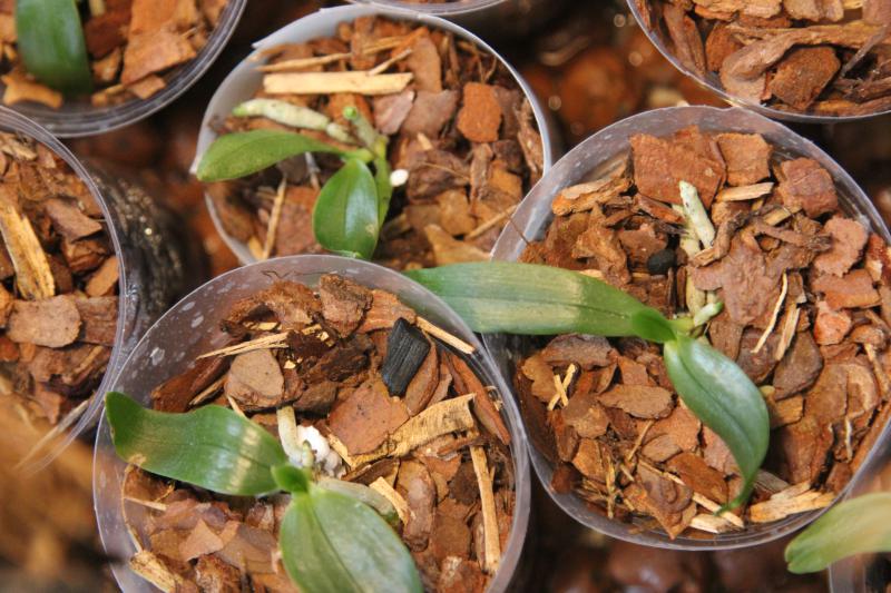 Извлекла 5 малюсеньких растения по два листика , посадила в мох и кору мелкой фракции неделю назад.