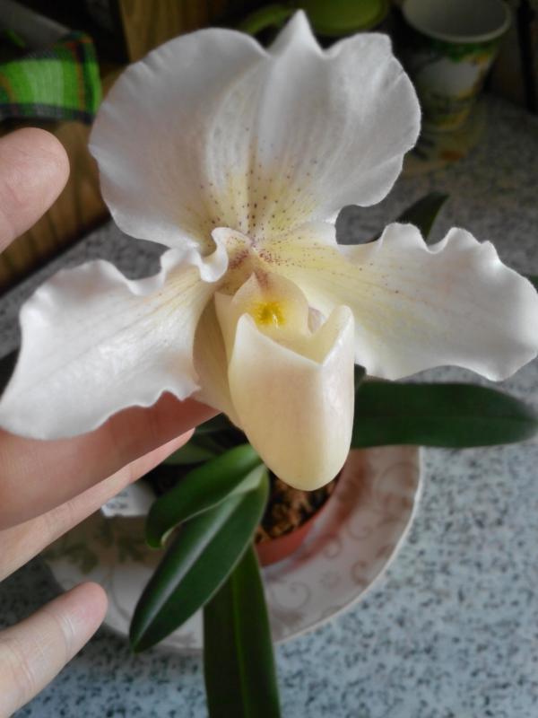 Псих, лика и башмачок - выше всяких похвал (правда, жучок удивил - у него цветонос длиннее, чем у моего Калихи Биг). Каттлея просто шокировала: 60 см в ширину (от листа до листа, а не края горшка). Даже не знаю, куда девать это чудо. Придется делать доп. стеллаж быстрее, чем планировала... А вот фраг, наоборот, оказался меньше, чем ожидала - но это уже хорошо)