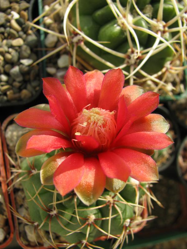 Вчера цвел гимнокактус Фирека, не очень эффектно, единственный плюс, что уже не только центральное растение, но и детки зацвели (но обычно, по прошлым годам, и цветы крупнее, и цвет насыщеннее):