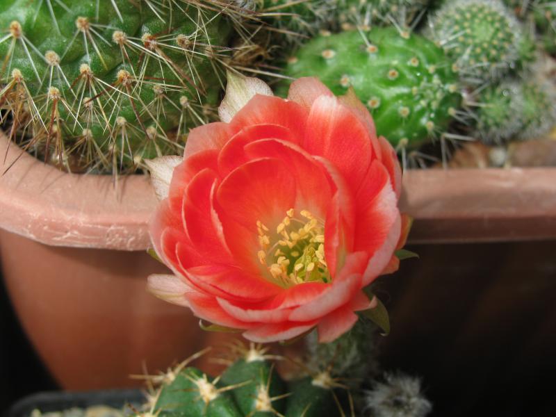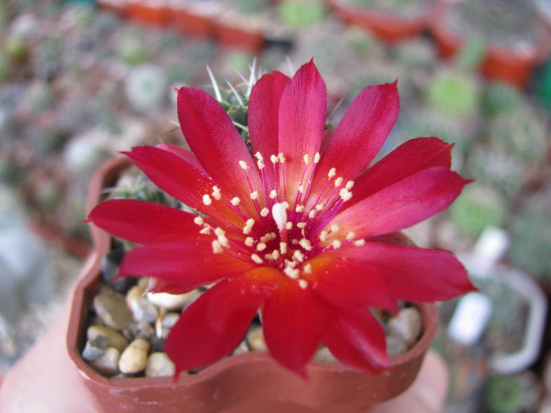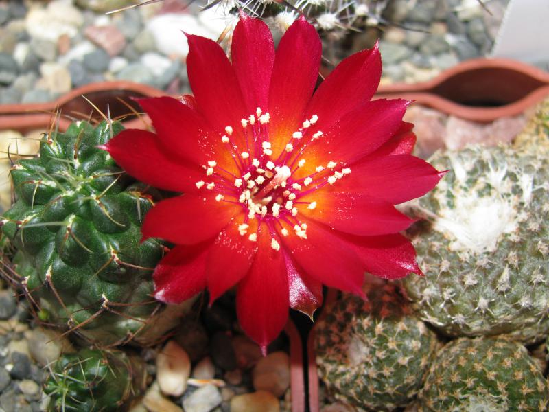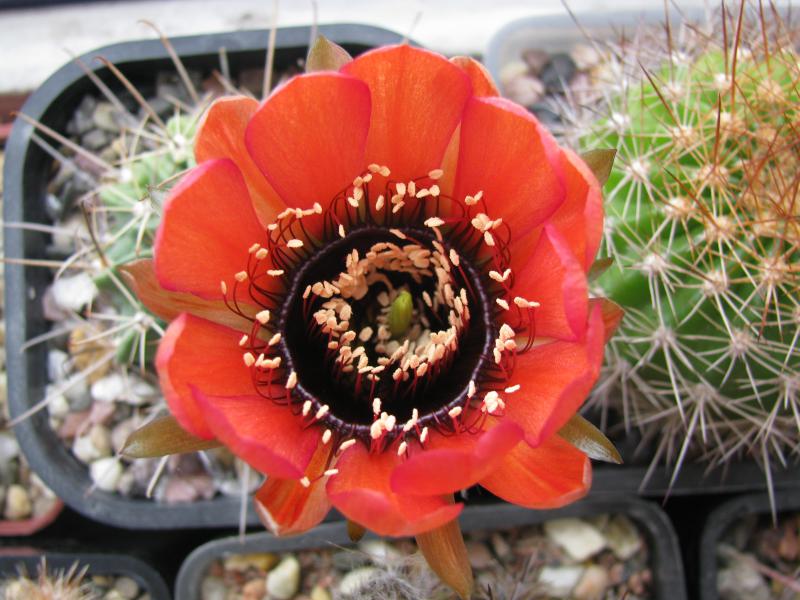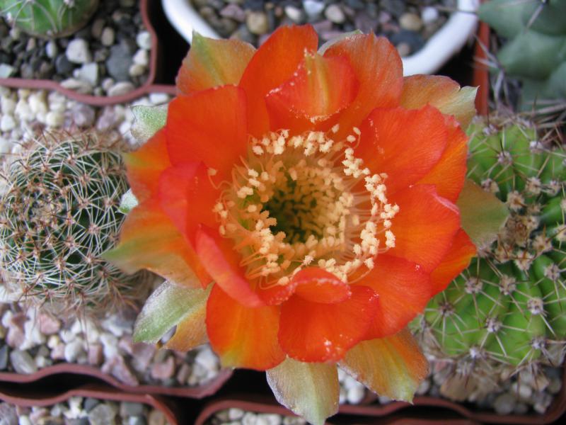 Lobivia tegeleriana цветочки маленькие широко не открываются, но горят, как факелы, на фото передать не получается: