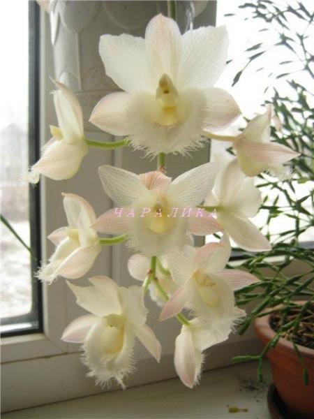Хочу поделиться, как я уговорила цвести Clowesia Grace Dunn "Chadds Ford". В одной статье прочитала, что Clowesia трудно заставить цвести, т.к. для цветения ей нужно большие перепады ночных и дневных температур(не меньше 10-15 градусов).