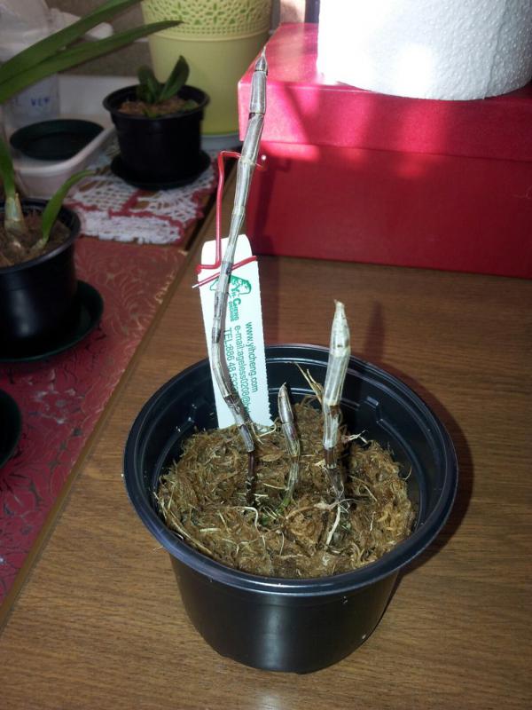 получила свой дендробиум пьерарди. хорошее растение как по мне. корней много живых. нашла одну улитку. но она отправилась плавать по просторам унитаза))) растение живое. высота 3 и 5 и 7 см. посадила в чистый мох. так как и пришло в чистом мхе.