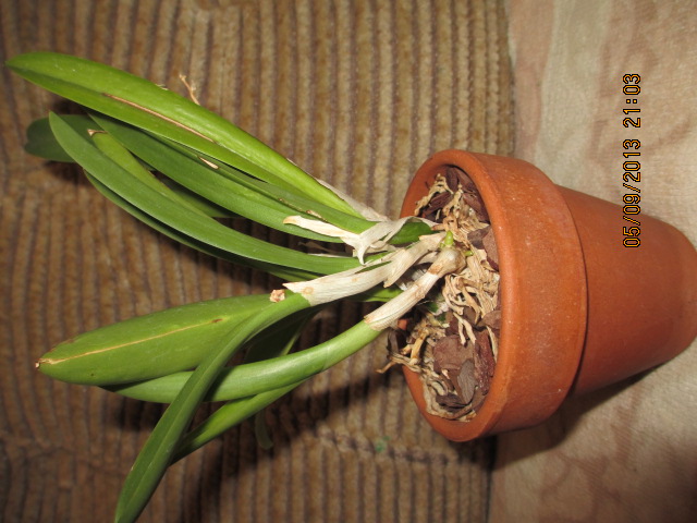 Он цвел два раза летом, как раз перед отпуском. И я не успела щелкнуть. Он был получен с Orchids Floriculturing. Там такая шикарная фотка. Но у меня процвел скромненько. Может ему чего-то не хватило. Или растение было слишком молодое. Не знаю.
