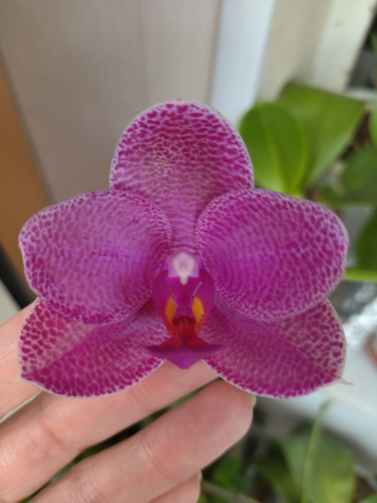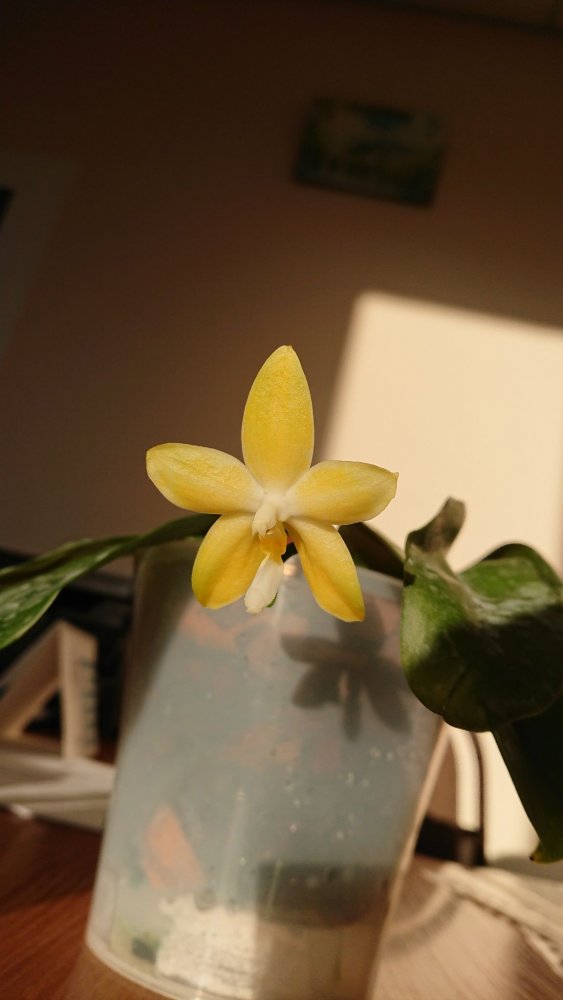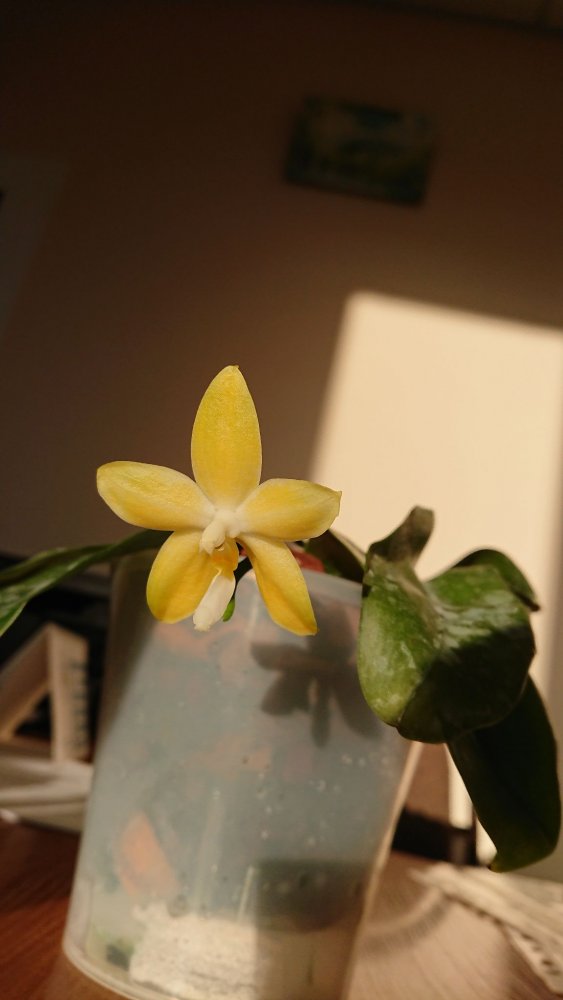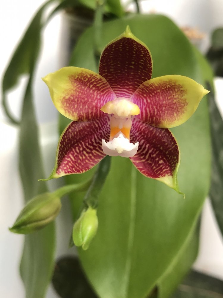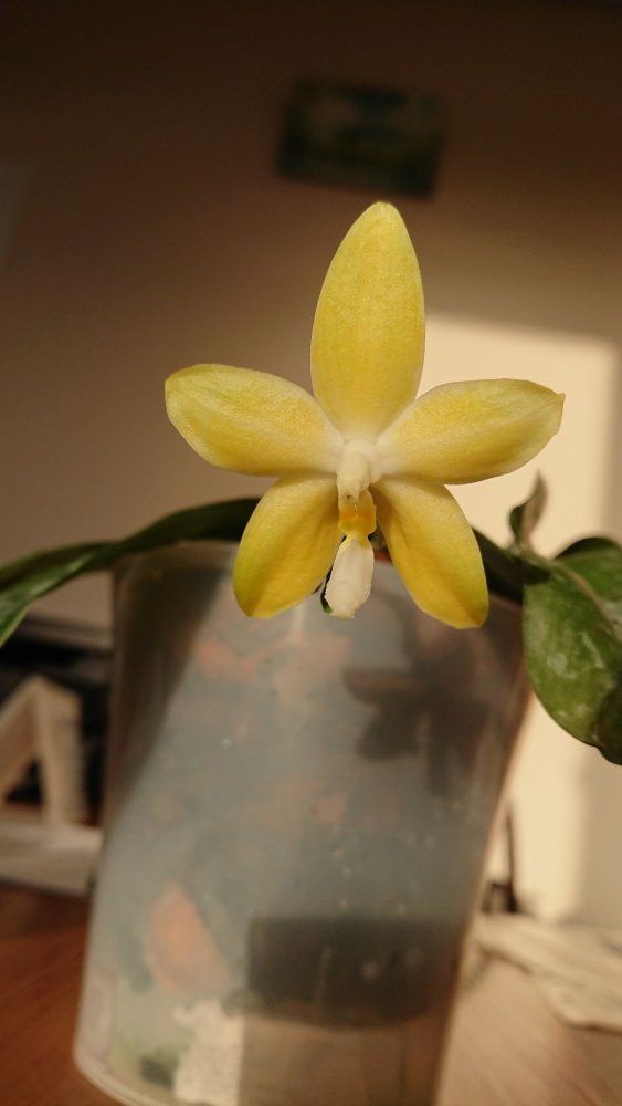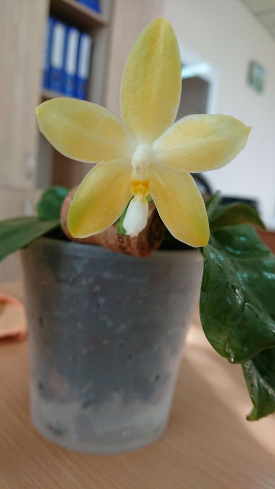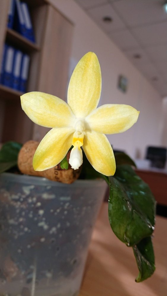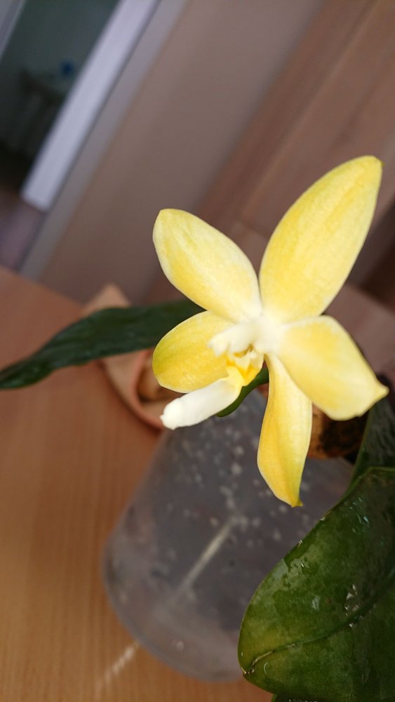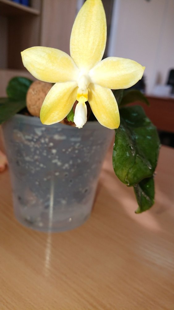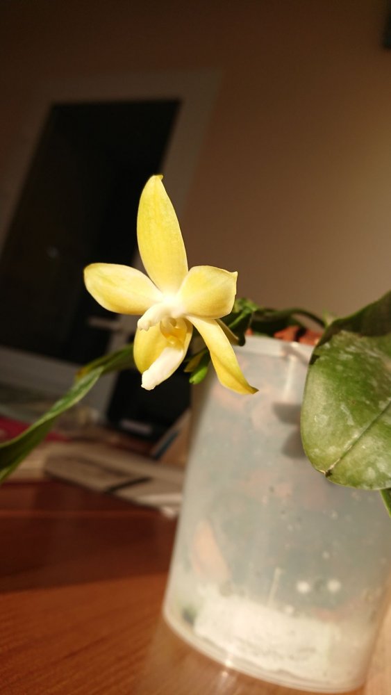 Из зимнего поступления:p. (Mituo Sun x Lyndon Coral Grosbeak)Yaphon. Первое цветение. Восковой, не ароматит. Цветонос очень высокий. Всего один цветок. 😆