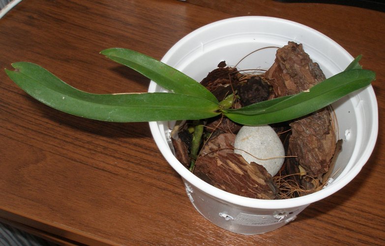 - это Paphiopedilum parishii хорошая лошадка пришла да еще и с деткой! за это время новый лист появился и детка в росте немного увеличилась. для такого сорта тугодума результат ооочень хороший.