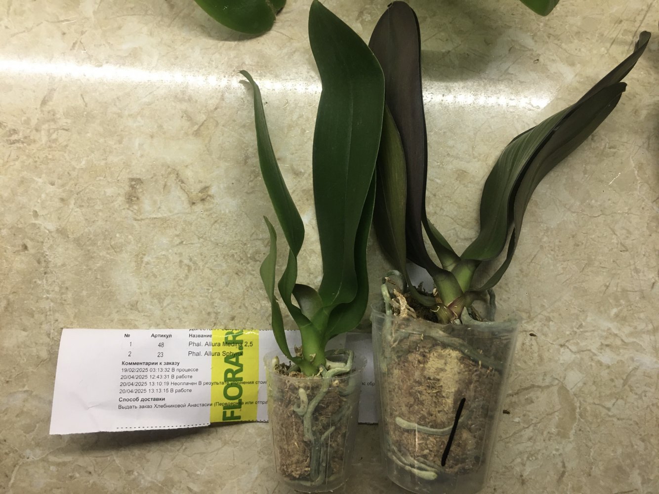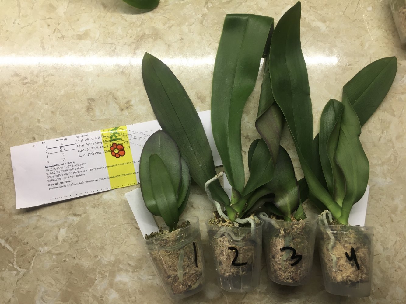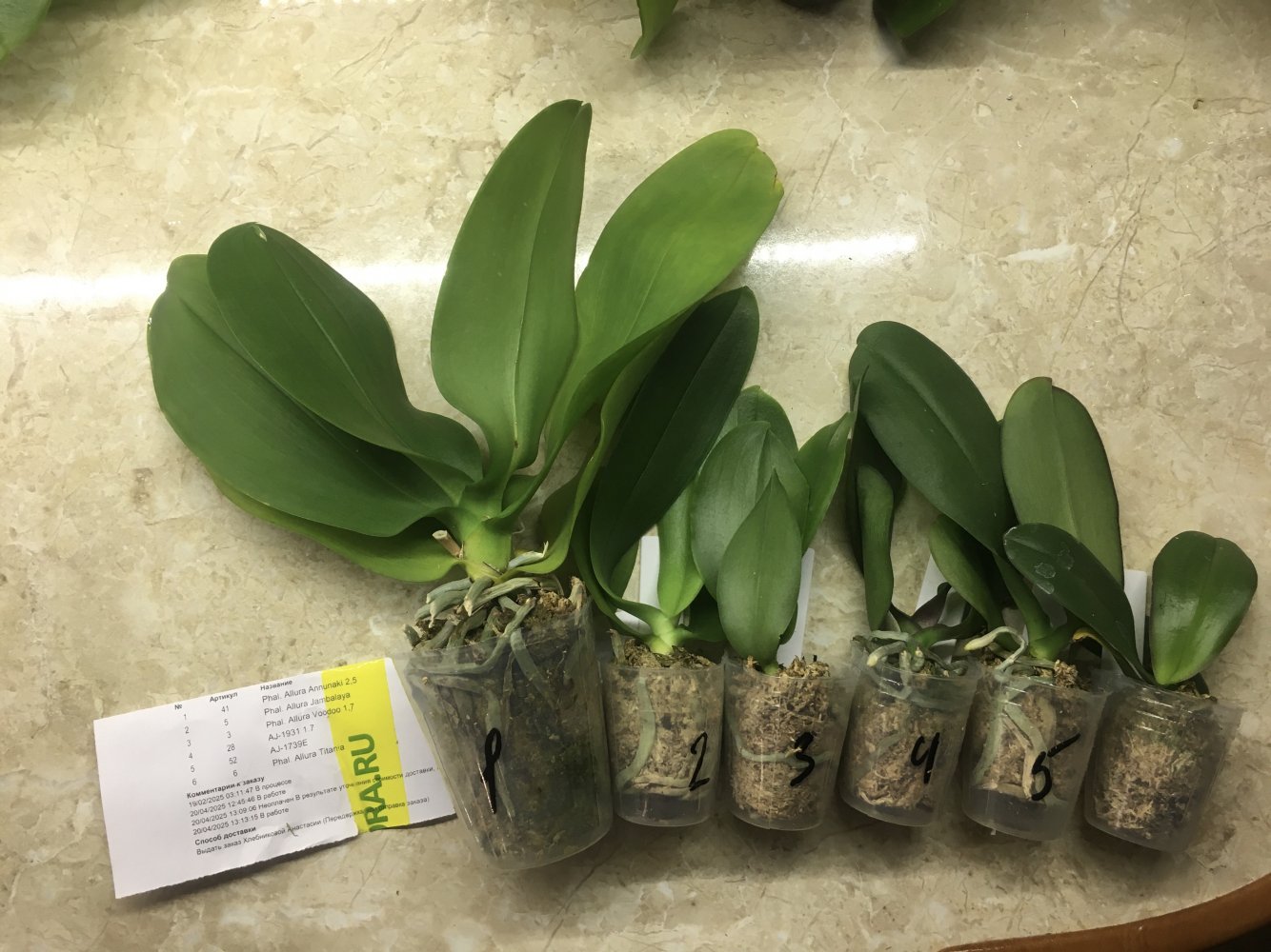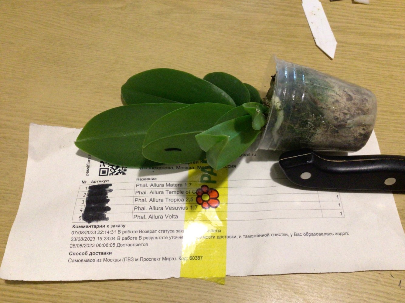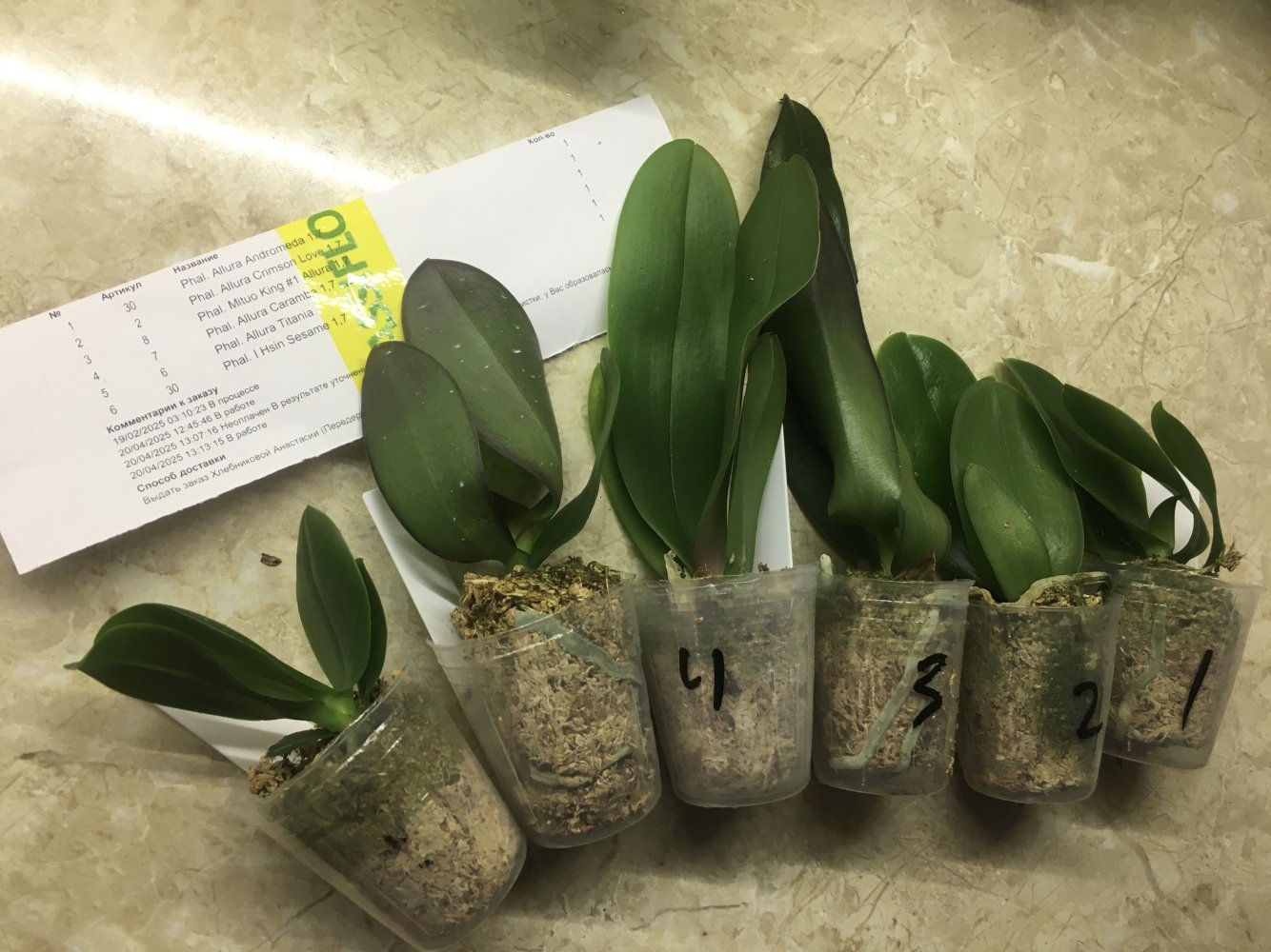 Заказ от 27.06.2023, получен самовывозом в день получения смс, в заказе 6 растений: