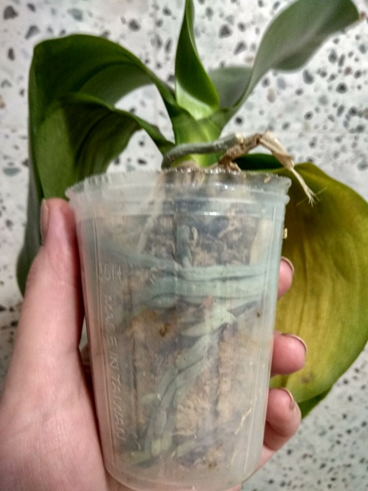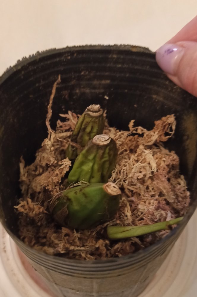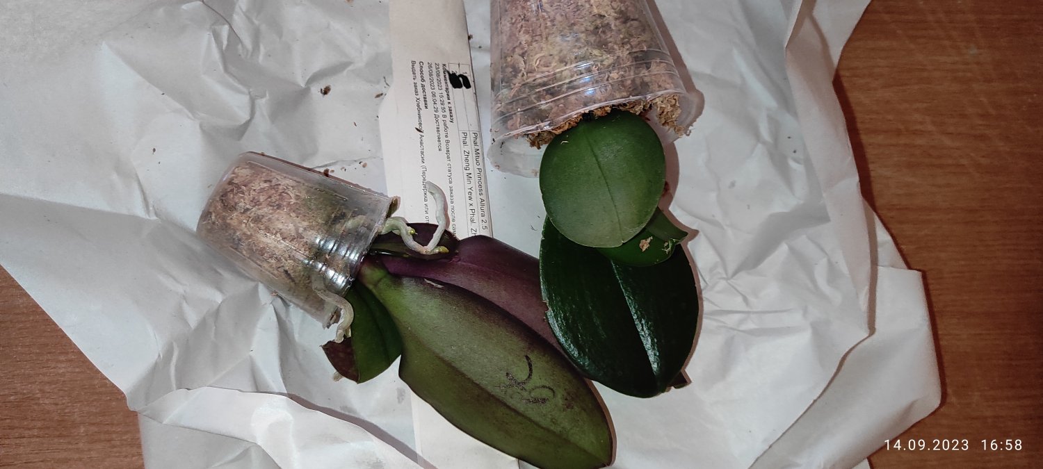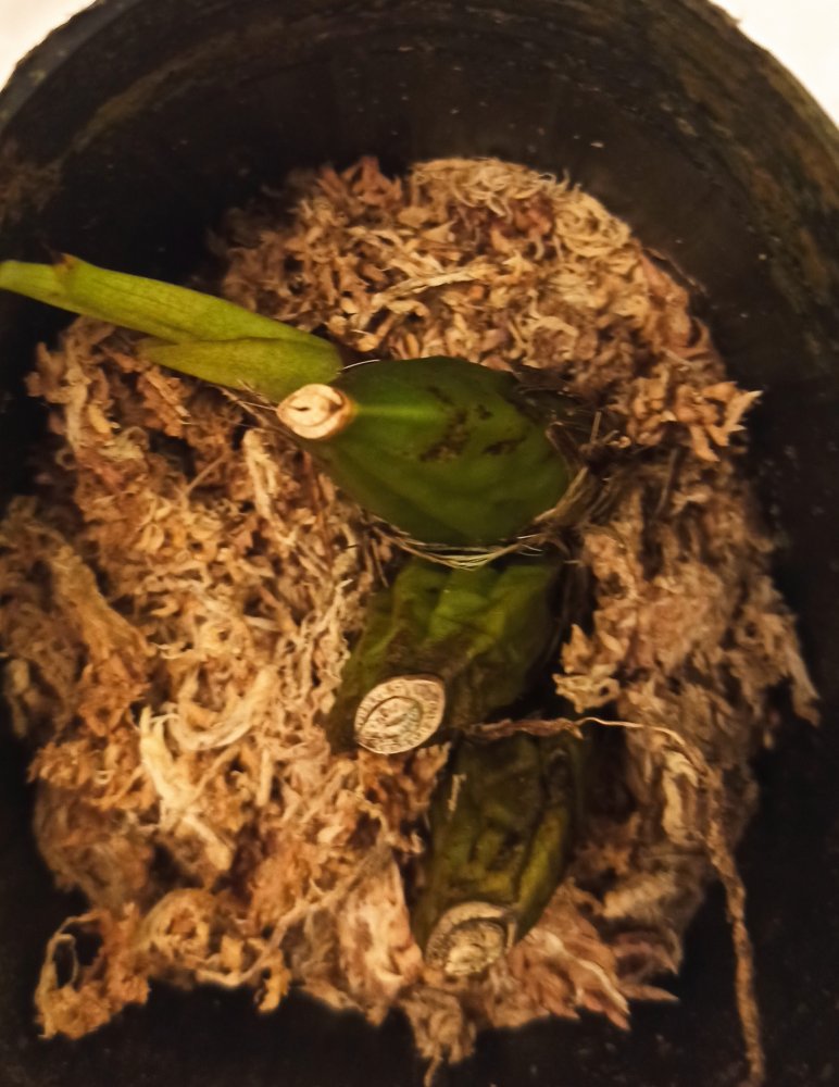 1 x Phal. violacea indigo x Phal. bellina S - было в горшке 1,7, развалилось при распаковке, несмотря на сухой мох, полностью сгнило у основания, спасать нечего.