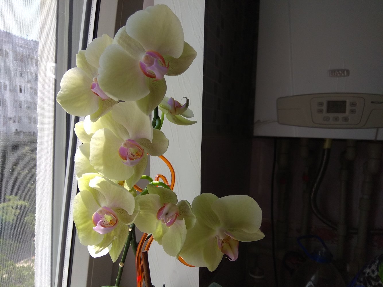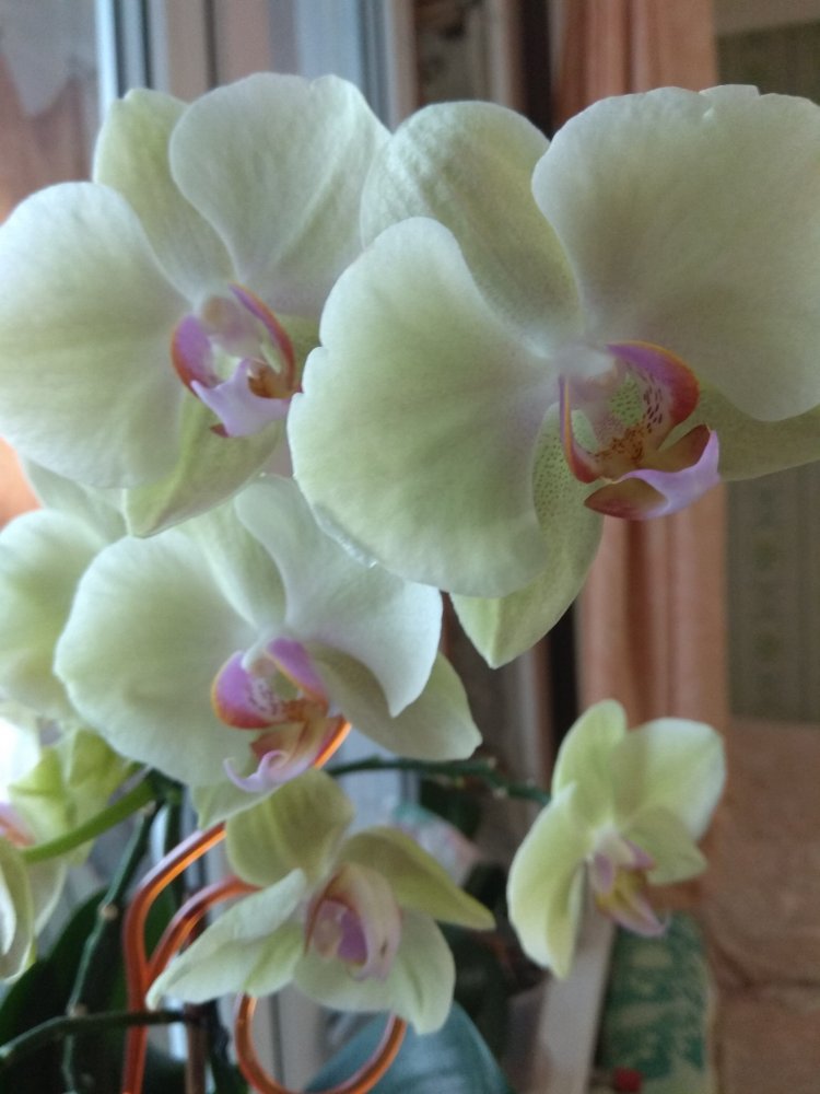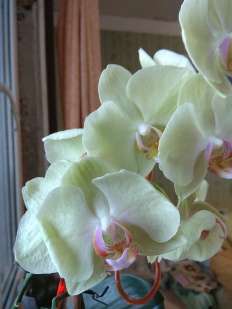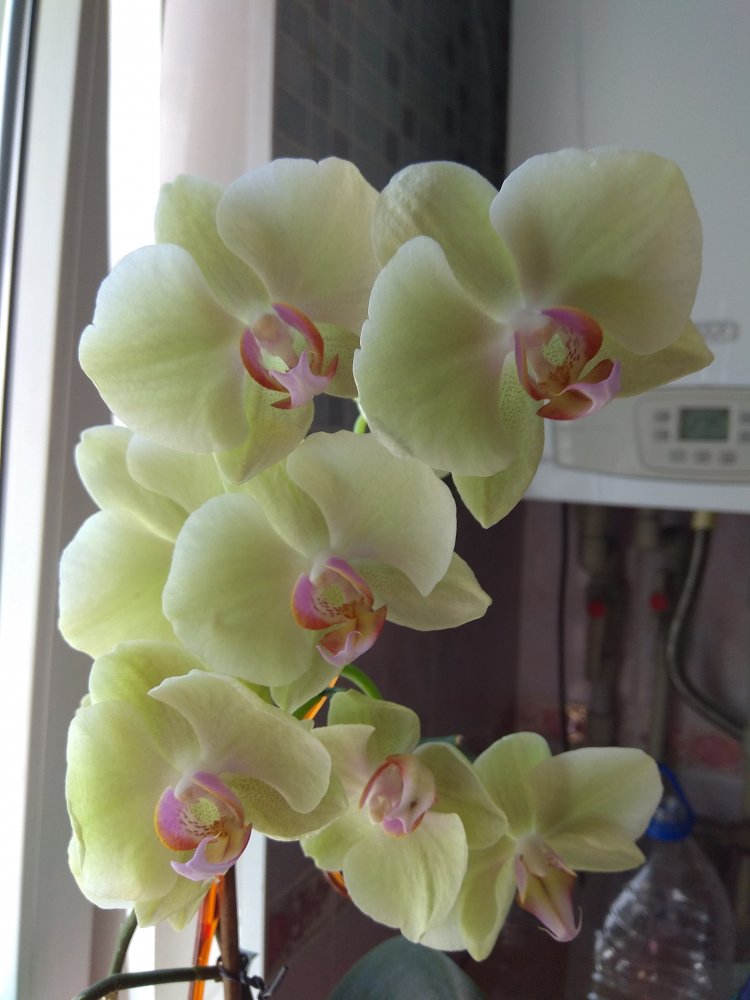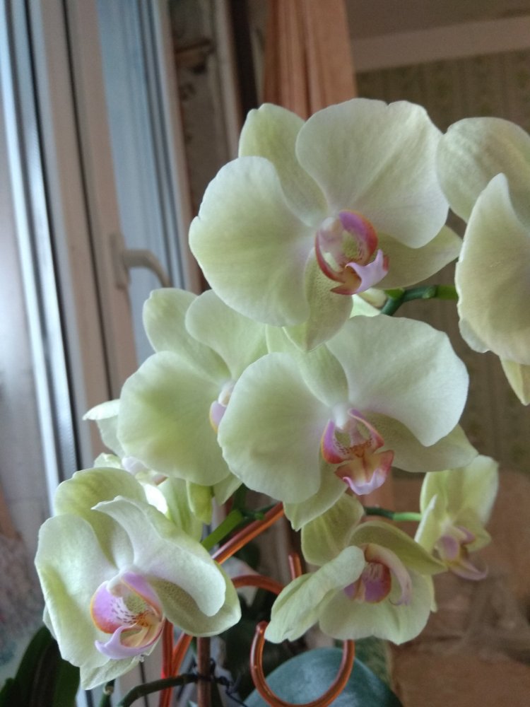 Phal. Sculpture. Цветы зеленоватые с розовым, ветвит цветонос и очень любит долго радовать пышным цветением!
