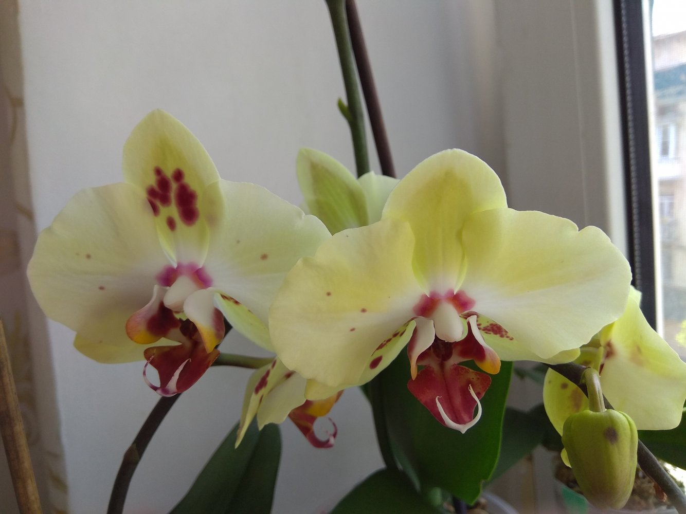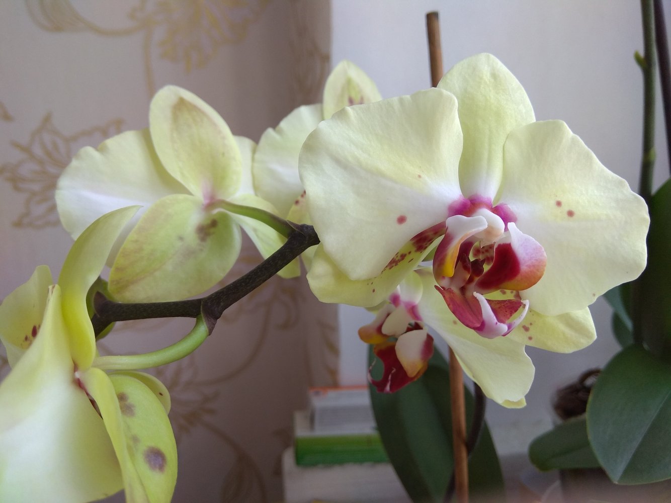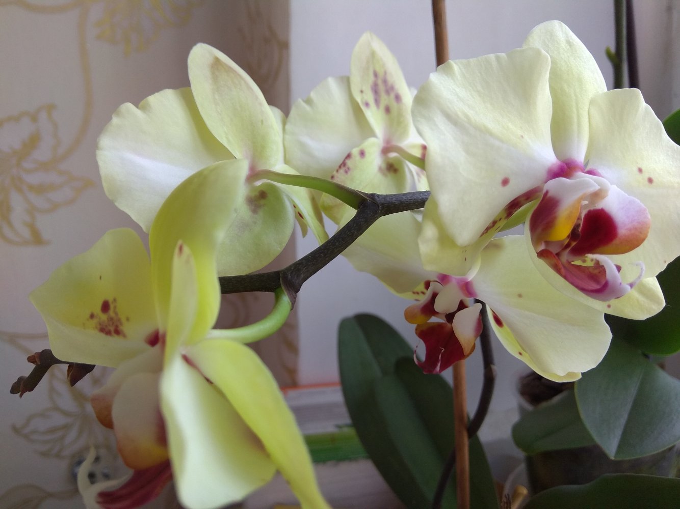 Phal. Sculpture. Цветы зеленоватые с розовым, ветвит цветонос и очень любит долго радовать пышным цветением!
