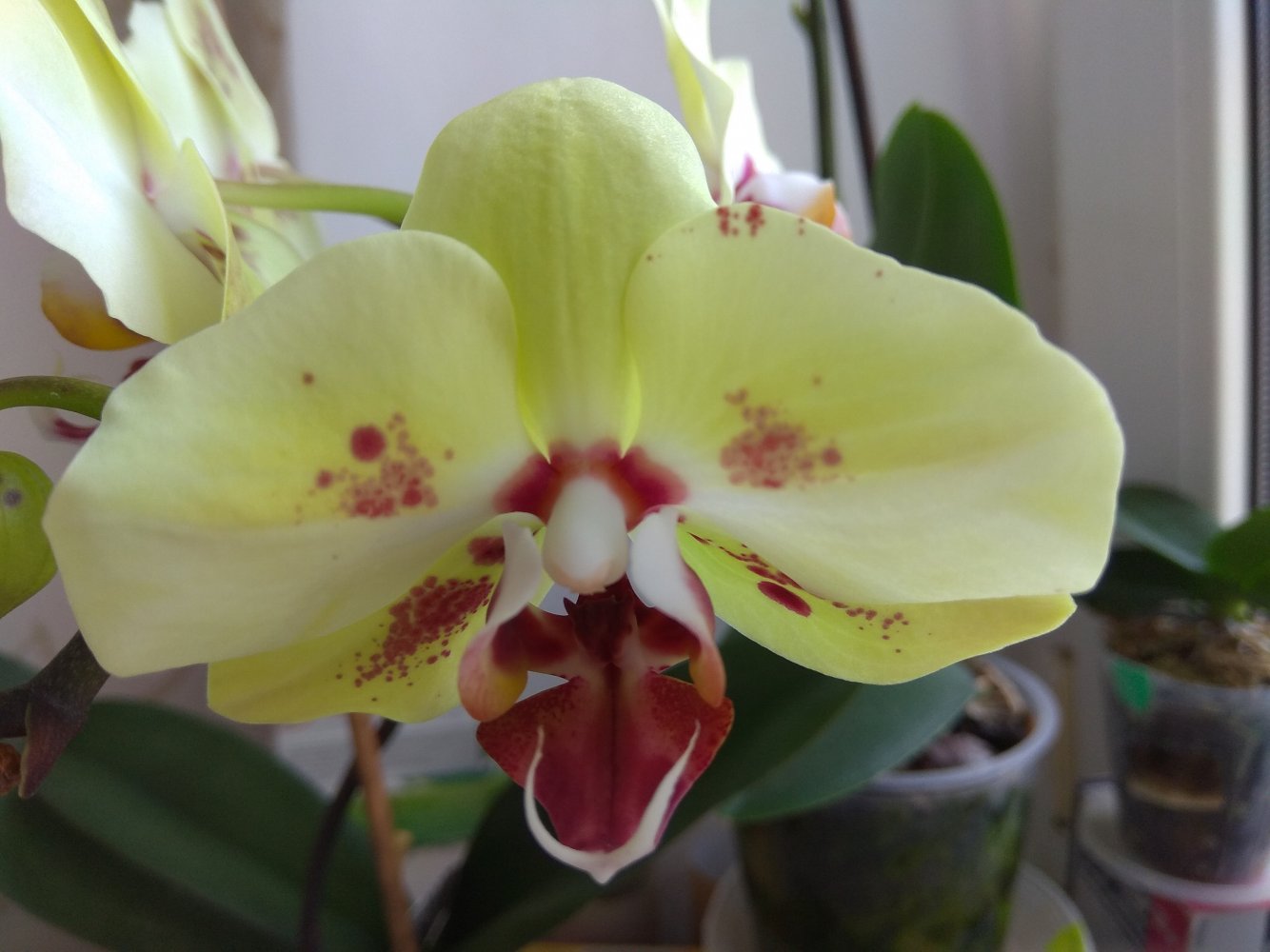 После реанимации зацвел Phal. Punch Exotic. Я ожидала большего... Но форма цветка нравится!!!