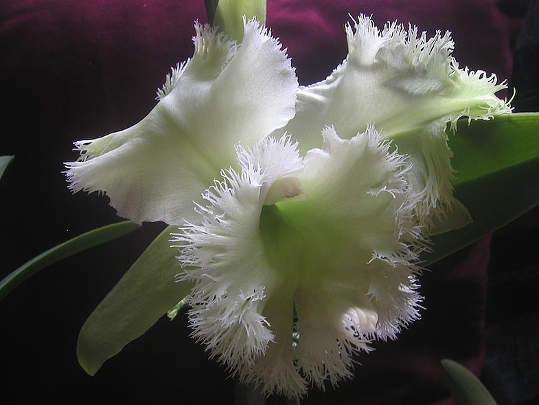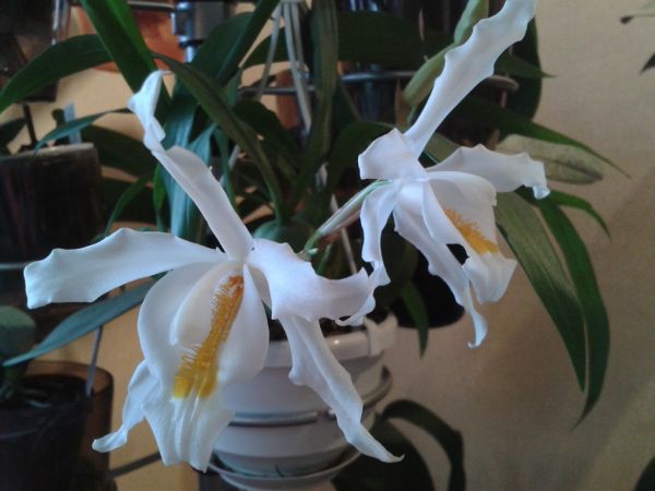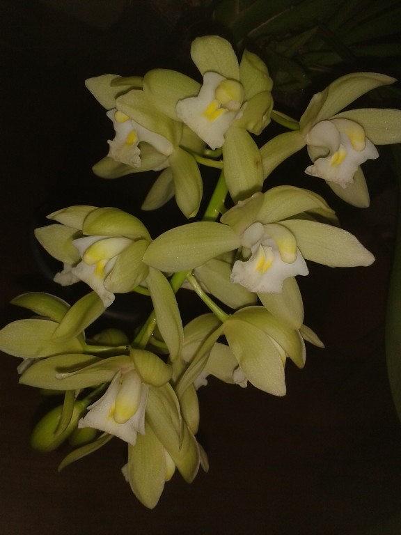 C.intermedia var. alba x C. walkerama var.alba у меня одна из первых, очень не прихотливая цветет с каждого нового роста,по моему Юченг но точно не скажу бирочка потерялась.