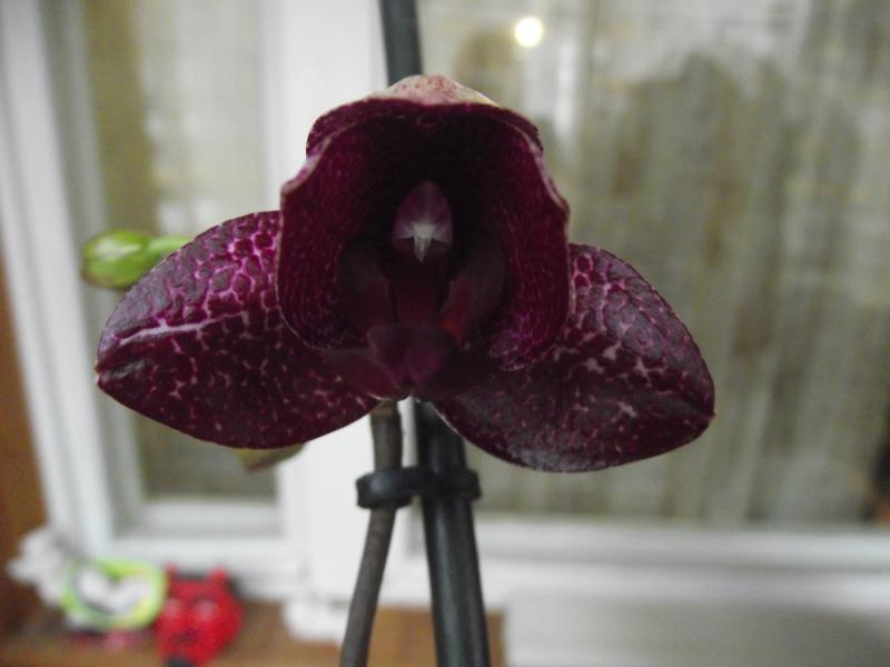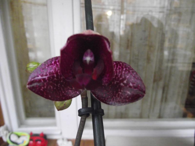 Mituo Sun YS начал распускаться, лепестки плотные, слегка бугристые, цвет передан верно, темно-бордовый, пока не пахнет.