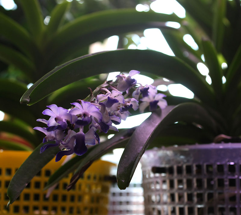И продолжает цвести Rhynchostylis coelestris , это досыл от первого парина, полученный недавно. Пришел с цветоносами и бутонами, к сожалению полностью все бутоны не раскрыл. примерно по 2 см от каждого цветоноса засушил.