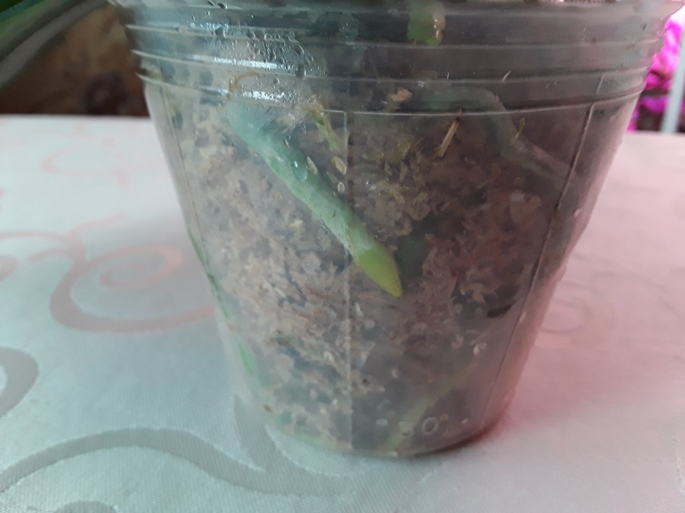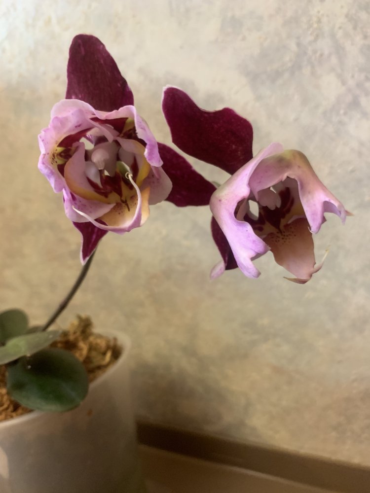 Поделюсь историей одного фаленопсиса от этого поставщика. В силу своего предыдущего негативного опыта с фаленопсисами от него, перестала здесь их заказывать. Сразу скажу, что все получала очень маленькими и в размере 1,7. Весной 2019 года после прихода Джой выставили на продажу из наличия много фаленопсисов от этого поставщика. Не устояла, взяла несколько разных. Получила все в горшках размера 3 близко к размеру цветения. Корней у стенок было мало. В их числе купила P. Joy Miller Nosa. На момент покупки у него было 4 взрослых листа, верхний был надломлен глубоко у основания, но в остальном хорошее растение. Всех оставила как есть, никого не пересаживала и никак не тревожила. P. Joy Miller Nosa постоял немного и вскоре заметила у него пимпочку у основания розетки. Обрадовалась, решила, что цветонос. Но это оказалась прикорневая детка. Росла она быстро и хорошо. Старая розетка полностью замерла в росте, даже корни не растила. К этой весне детка уже обогнала по размерам материнское растение, стала активно растить свои корни. Мох уже порядком испортился. Но помня свой негативный опыт с предыдущими пересадками фаленопсисов от Джой, боялась даже дышать на него, не говоря уже о пересадке. Кстати, другие от Джоя также прекрасно росли дальше в этих же горшках и мху, как купила. И тут на ютюб канале Пассифлоры вышло видео о пересадке фаленопсисов как раз с фермы Джой! пересмотрела несколько раз и решила рискнуть, посадить в точности как показано именно все фаленопсисы от Джой (хотя ранее так никого не пересаживала). Сделала все как показано в ролике. Очень боялась туго набитого мха, что корни загниют. Но к моему удивлению, все пережили отлично, даже не показав никакого недовольства, прекрасно продолжили расти дальше. Тогда пересадила по такому же методу еще несколько фаленопсисов - начиная от малышей 1,7 практически без корней и заказнчивая взрослыми в 2,5. Всем без исключения пересадка пошла на пользу. У кого с корнями были проблемы - стали отлично их растить. И вот как на сегодня выглядит P. Joy Miller Nosa - старая розетка так и не стала расти дальше , но корни от нее еще живые. Зато детка отлично выросла и растит прекрасную корневую. Очень надеюсь вскоре увидеть ее цветение)).