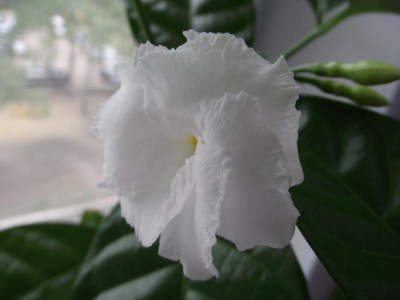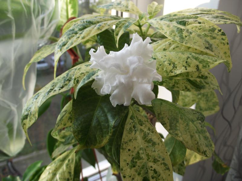 Расцвела пестролистная табернемонтана - tabernaemontana divaricata variegata, получена год назад с Экзотикплантазии. Растение более компактное, листочки помельче чем у tabernaemontana divaricata, цветы по размеру почти одинаковые, пахнут одинаково.
