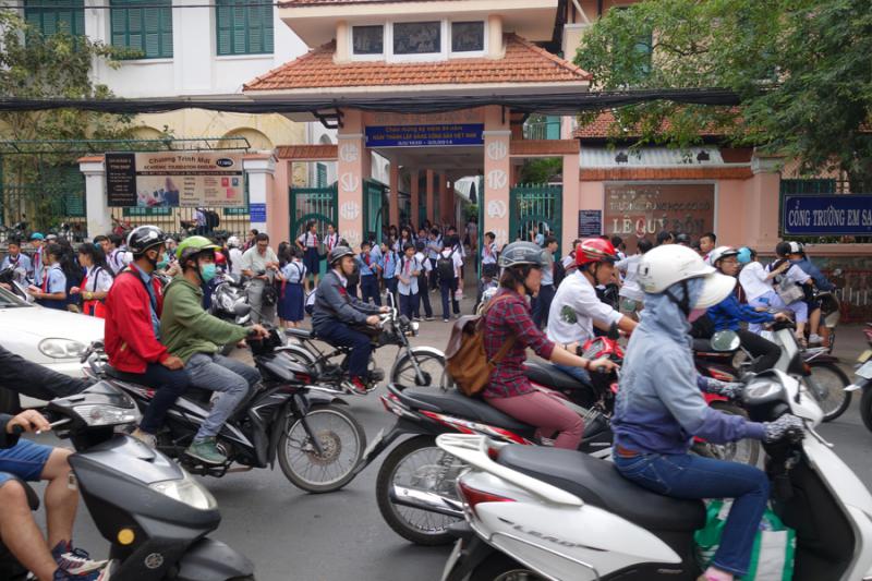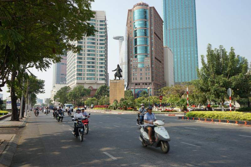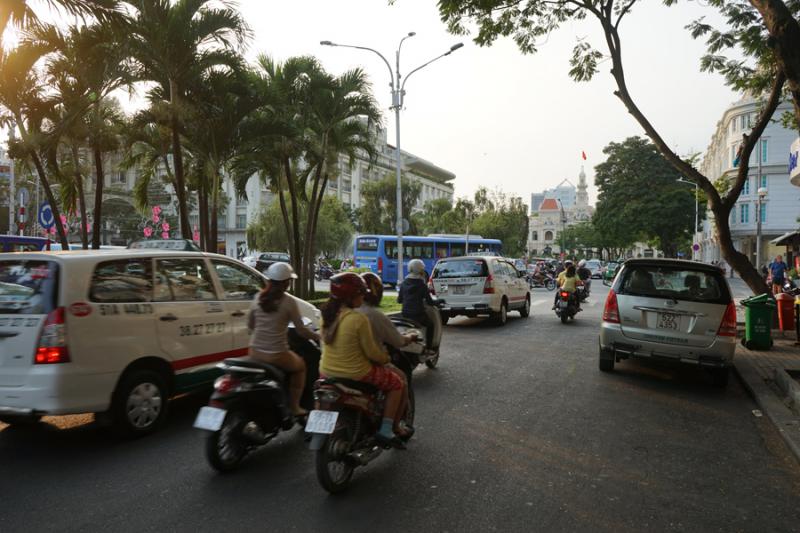 Движение в Сайгоне действительно бурное. Главный принцип calm and go on - успокойся и иди. Так оно и есть. Нужно просто перейти дорогу, делая вид, что вокруг нет тысяч байков и они вовсе даже не едут. 