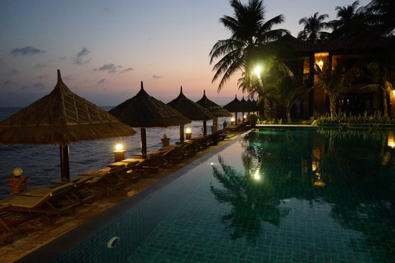 И резюмируя: если Вы не знаете языка, если Вам не хочется быть в стране с другим языком, хочется недорогого, спокойного отдыха с туристической (т.е. неэкстремальной и адаптированной) кухней, дешевых фруктов и морепродуктов, Муй Не это то, что надо . В 22 часа жизнь на улицах прекращается, все тихо и спокойно. И даже очень бюджетные отели (на фото зашли в один из таких, что то около 30 долларов за ночь) выглядят очень симпатично и зелено.
