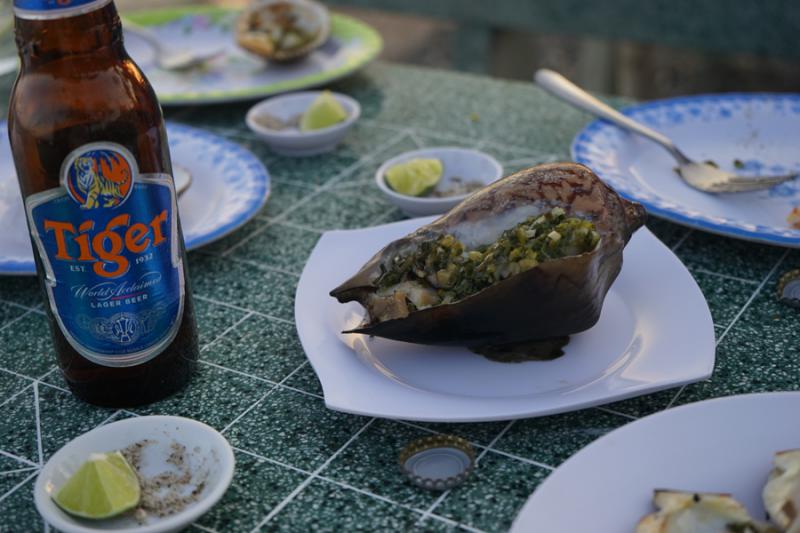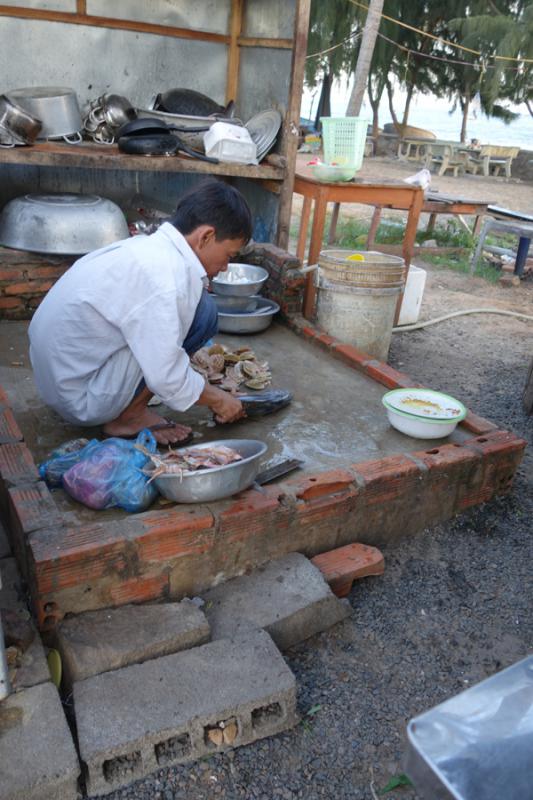 Ну а остальное.. Море солнце, пляж, массаж, свежие морепродукты, манго 45р килограмм. Одна единственная улица километра 3 длинной, переходящая из магазинов, турагентств Дядя Ваня и одинаковых едален с одинаковым меню и приблизительно одинаковым качеством в бо ке. Бо ке это лавочки с кучей морепрлдуктов, которые приготвят по Вашему желанию. Правда вариантов, из которых можно желать всего два – «на пару» (варят в кипятке) и на гриле (не умеют совершенно!). Весы изначально настроены на + 100 гр. с каждого полукило. Самые недорогие крабы и более менее честные продавцы в самом конце улицы. 250 донгов (375р) за кило. Варит тетечка крабов в простой, несоленой воде, поэтому крабы невкусно пресные. Еще один тип обмана - это лобстеры. Вам показывают живого за 750, а потом отваривают мороженного (которые по 60-550). Если хозяин не готов готовить при вас или просто продать омара (заберу с собой и приготовлю сама) - обманывает.