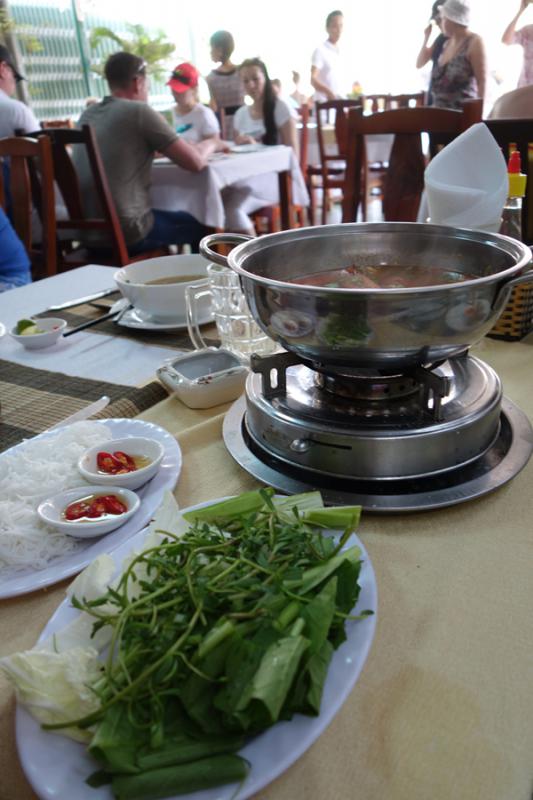 После был обед. Водитель торжественно привез нас в тур. место с картошкой фри и спагетти (Song may) и был крайне расстроен, если не сказать разозлен, что мы тут же развернулись. Второе место постигла та же участь. Пришлось ему поехать в город где глазами и опросом местных была выбрана страшненькая на вид ( как и все настоящие ресторанчики в ЮВА) столовая, где за где за 30 ххх донгов (45р) мы поели изумительны, в дальнейшем занявший второе место в нашем рейтинге, Фо Бо.