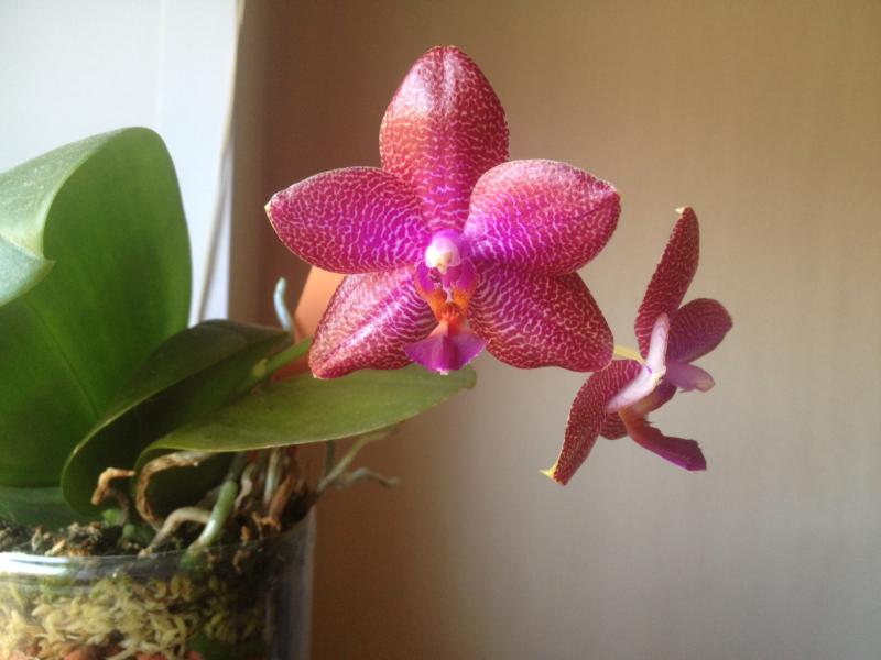 и вот распустился , полученный в июле P. Mituo sun x dragon eagle МО98, цветок глянцевый, не большой 4.5-5 см , с запахом ))) если поднести к носу! переливчатый с малиновым отливом! красавчик в общем:girl_in_love: