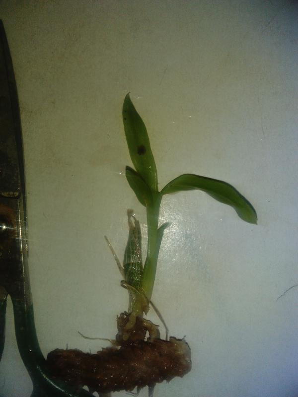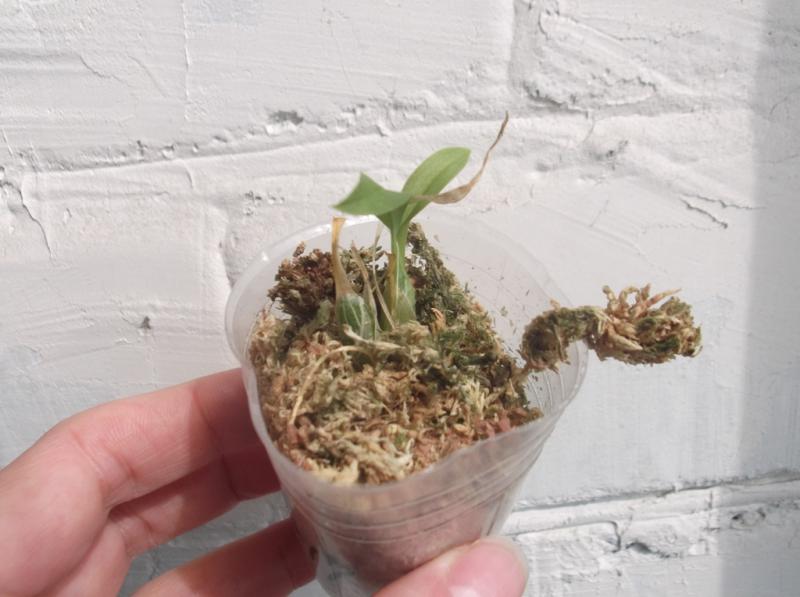 С этим несколько получше. Был готов, что растение придет маленьким, поскольку видел отзыв о предыдущем заказе. В горшочке оказалось два растеньица. Сначала думал, что это отвалившаяся бульба, но покопавшись обнаружил, что это отдельная морковочка. На основной морковке пробивается новый росточек.
