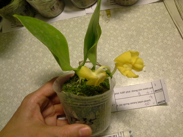 Phal. Zheng Min Violet, знала, что много вариантов цветения у этого гибрида, но надеялась на цветное, а он желтенький будет с розовой губой.