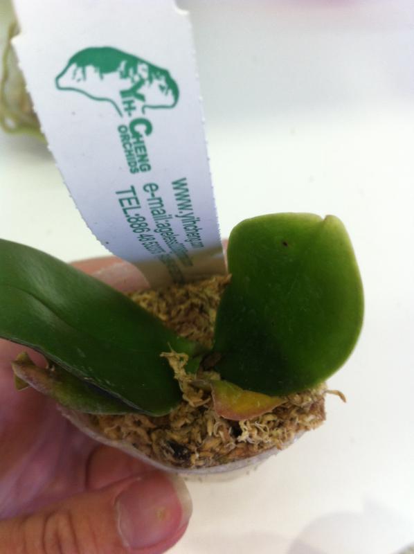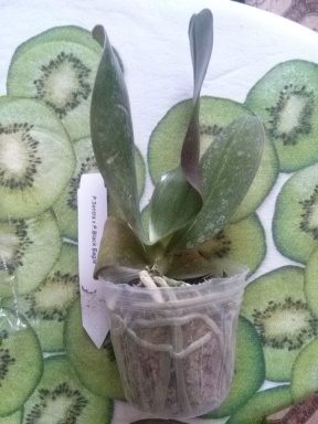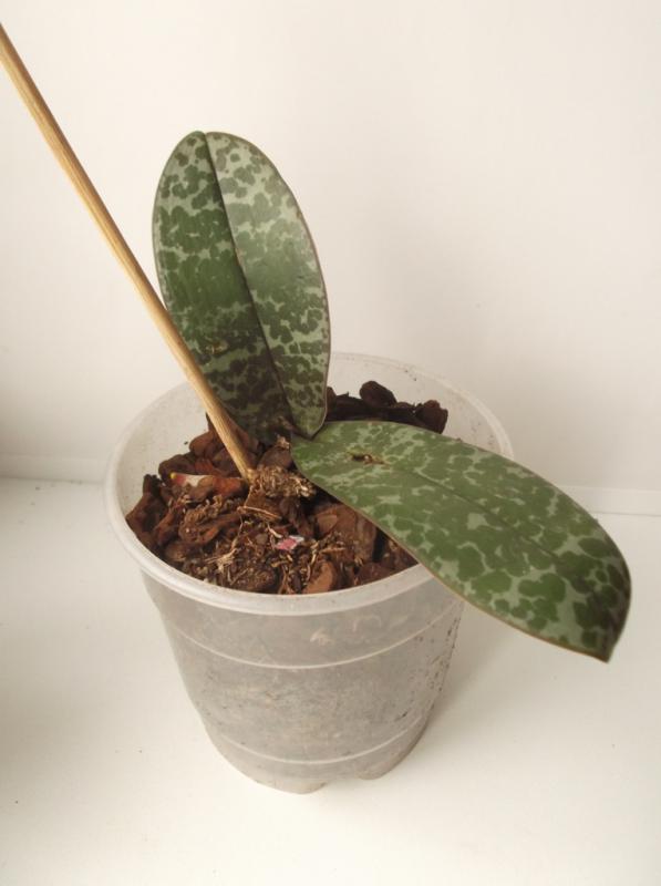 заказан Phal. Meidarland Sunlight (P.Golden Sun x P.Ld's Bear King ), растение пришло в горшке 3,5, очень много корней, отцветшее, но верхний лист пришел с сильным поражением, из-за чего его пришлось удалить, подозреваю, что был на каком-то этапе доставки резкий тепловой перепад, пострадал самый молодой лист.